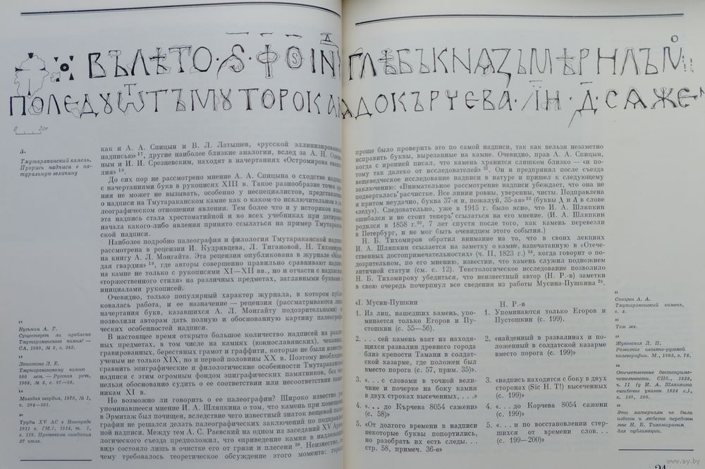 Большой энциклопедический формат. Тираж 4900 экз. Эта книга знакомит читателя с историей открытия и изучения одного из самых известных памятников русской эпиграфики — так называемого Тмутараканского камня. Тмутараканский камень — мраморная плита с высеченной на ней русской надписью, найденная в 1792 на Таманском полуострове адмиралом П. Пустошкиным. В настоящее время хранится в Государственном Эрмитаже в Санкт-Петербурге. Является древнейшим свидетельством о гидрографических работах в древней Руси. Надпись на камне, найденном в Тамани в конце XVIII в., до сих пор является объектом неутихающих споров: подлинный ли это памятник XI в. или фальсификация? Автор подводит итоги почти двухсотлетней дискуссии о камне, сравнивает надпись с другими эпиграфическими памятниками, открытыми в последние десятилетия, и предлагает свою трактовку этого памятника.