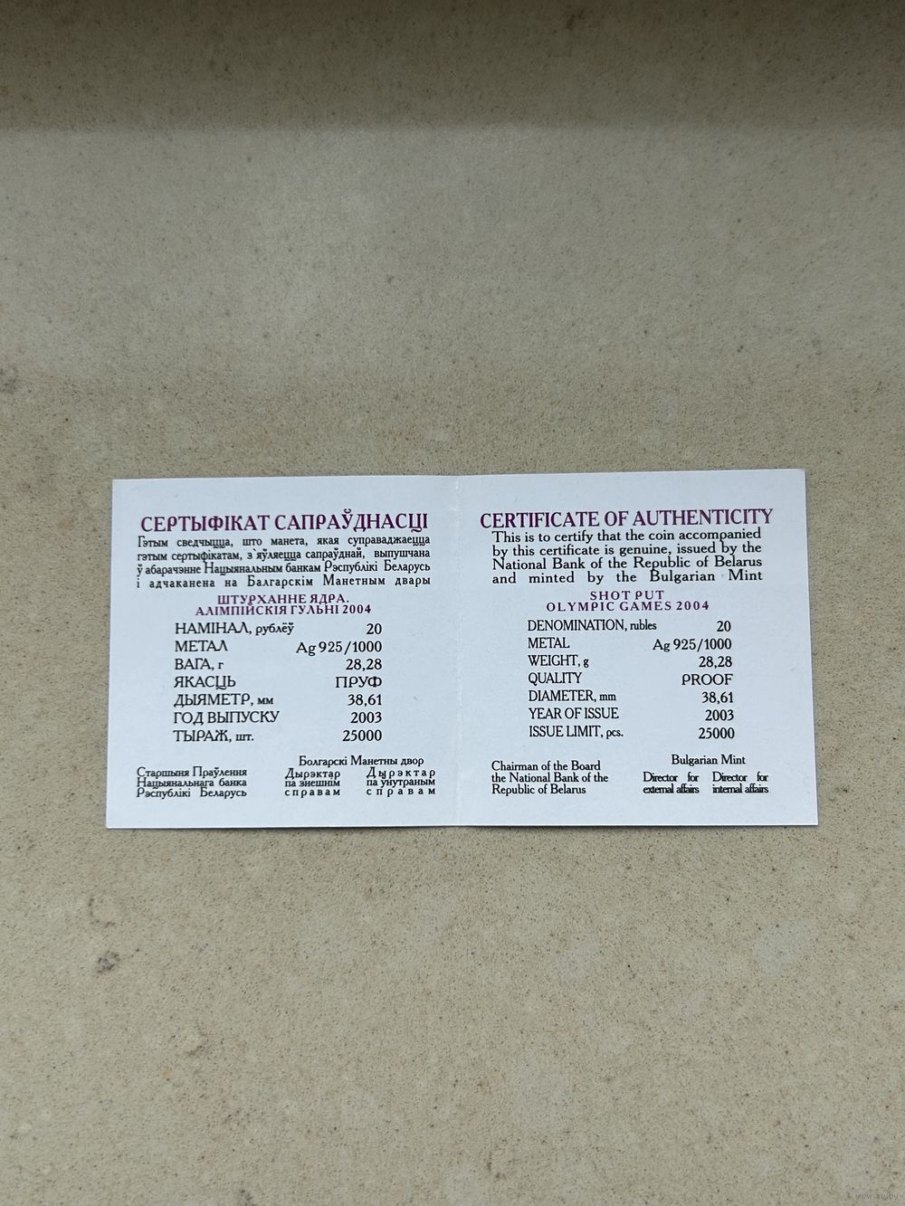 | Вес монеты | 28,28 г |