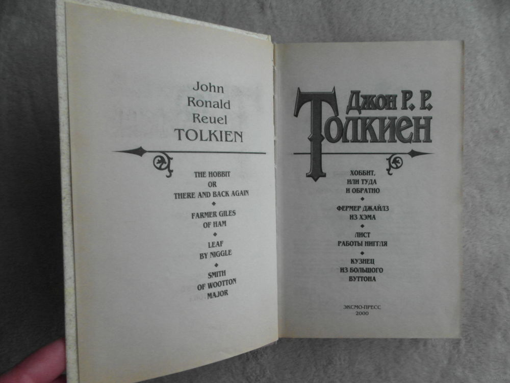 Кроме сказки *Хоббит, или Туда и обратно*, кроме пролога к знаменитой трилогии *Властелин колец*, в эту книгу вошли сказки: *Фермер Джайлз из Хэма*. *Лист работы Ниггля*. *Кузнец из Большого Вуттона*. Иллюстрации и черно-белые и цветные.