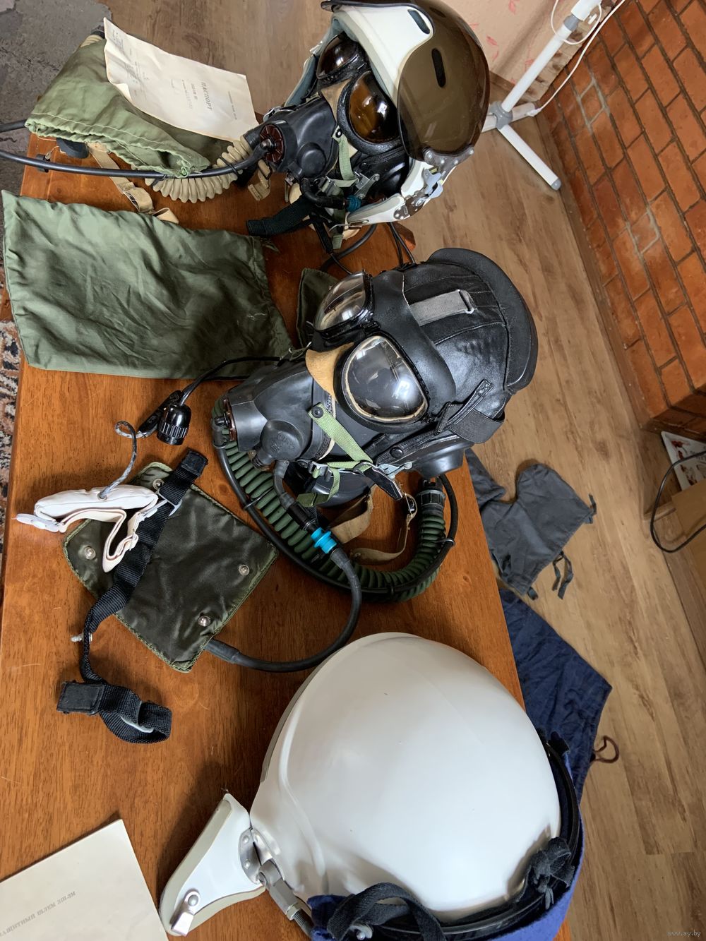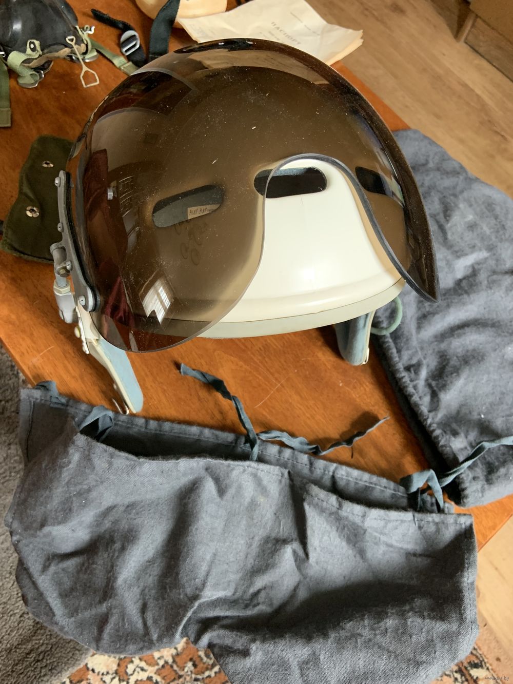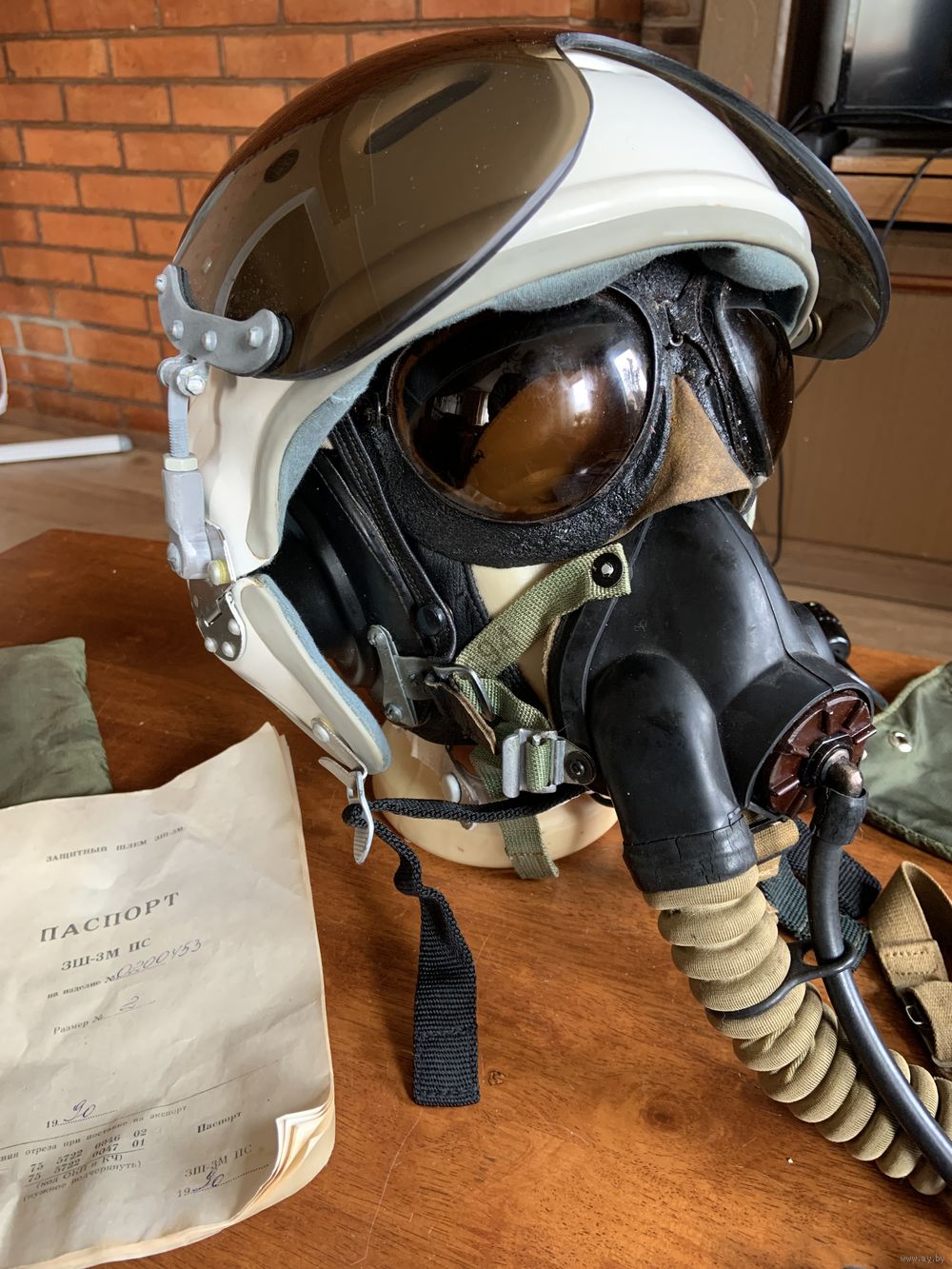 кислородная маска "КМ-32" в полнейшей комплектности-с мешочком где ЗИПы к маске, подбородочным ремешком со спец креплением-для фиксации мягкого шлема к ЗШ-3! На шланге -гофре маски "КМ-32" и спец.ремешок -он крепится к левой лямке парашютного ранца когда пилот маской не пользуется находясь на высоте не более 4 км-нет кислородного голодания! Обязательно вначале узнаём наличие и все детали! нет рейтинга-вайбер-телеграмм. В цену лота входят и оригинальные очки советских пилотов! Это второй комплект из музея ВВС СССР имени генерал-лейтенанта Василия Сталина! Первый выставлен в разделе "другое".