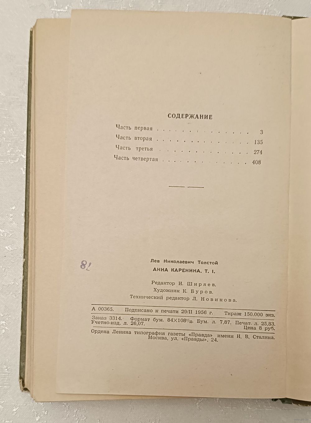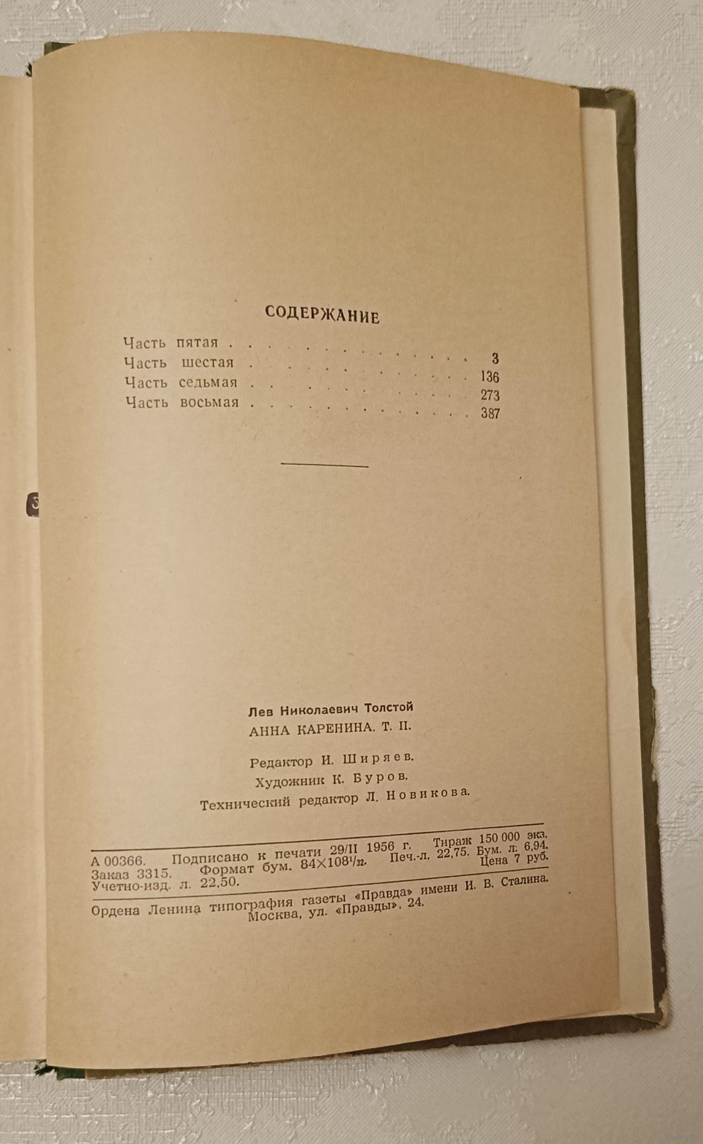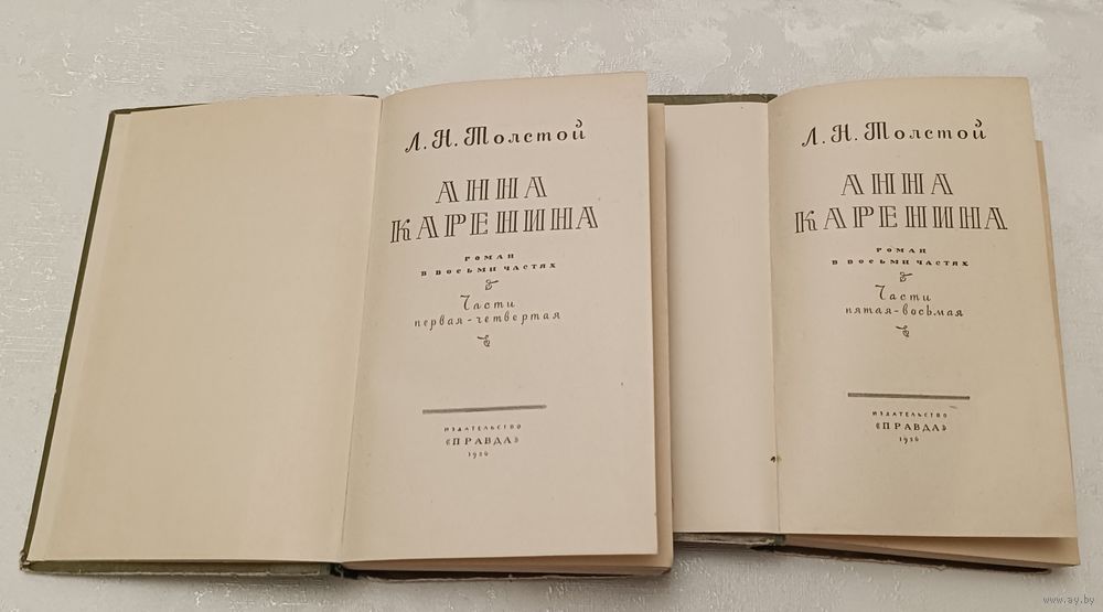 Толстой Лев. Анна Каренина (комплект из 2 книг) Москва, Издательство "Правда", 1956, стр. 504+ 444, твердый переплет.