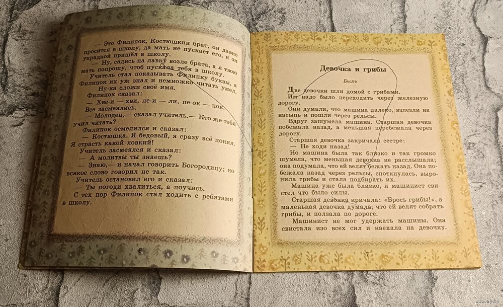 Толстой Лев. Два товарища -рассказы. Библиотечка детского сада. Изд. Мн., Юнацтва, 1988, стр. 22, мягкая обложка, формат 70х84/16.