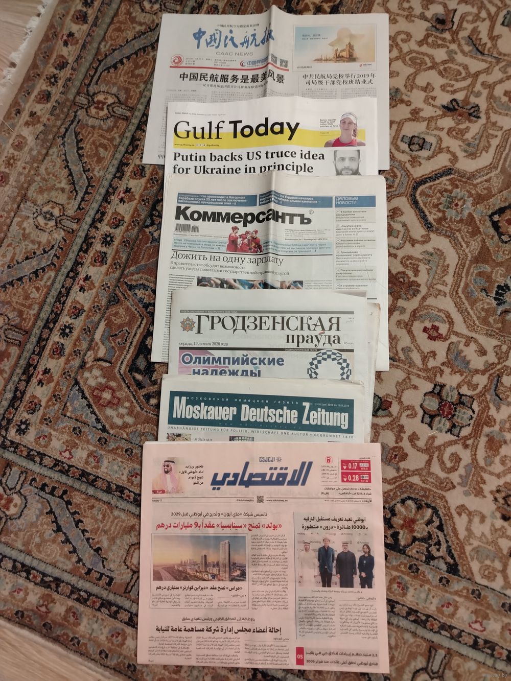 Толстые газеты:китайский, английский, русский, белорусский, немецкий, арабский языки.