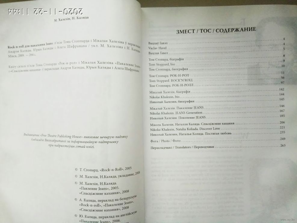 Известный британский драматург Том Стоппард и режиссер белорусского «Свободного театра» Николай Халезин издали свои свободолюбивые пьесы под одной джинсовой обложкой. В книгу вошли пьеса Тома Стоппарда «Рок-н-Ролл» (про события Пражской весны 1968 года), а также работы Николая Халезина «Поколение Jeans» и «Постигая любовь» (в соавторстве с Натальей Колядой). Красной нитью через все пьесы проходят темы свободы, внутренней и внешней, а также попытки наладить человеческие отношения в условиях тоталитарного общества, пишет газета «Наша Ніва». Возможно, итогом усилий авторов представить судьбу целого поколения является исповедь частного человека. Премьера моноспектакля «Поколения Jeans» состоялась в «Свободном театре» в 2006 году: тогда в театральном обозрении британской газеты The Guardian спектакль получил наивысший балл. В «Поколении» главный герой рассказывает о полуподпольной торговле иностранными пластинками в Минске 80-ых, и потом переходит к описанию отсидки «на сутках» за участие в политической акции уже в теперешней РБ. Каждая пьеса изложена на трех языках: белорусском, английском и русском. Предисловие к книге написал бывший президент Чехии Вацлав Гавел.