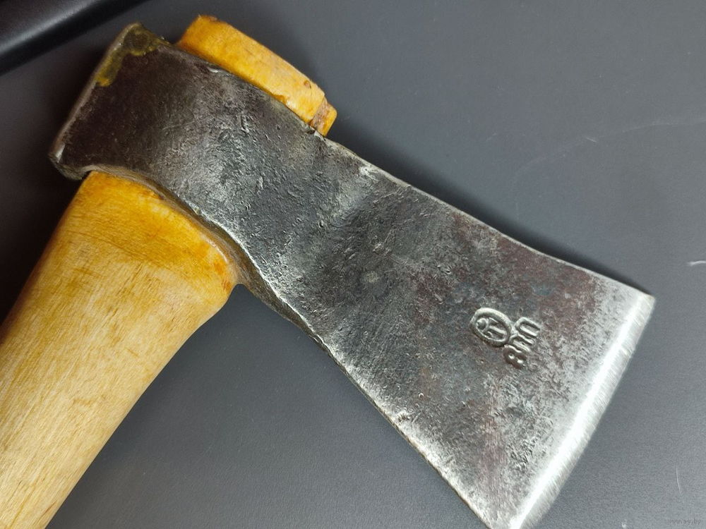 Клеймо завода Труд Вача постсоветское. Часть головы сверху срезана, - вес уже не 800 грамм, а немного меньше. Длинная рукоятка компенсирует недостаточный вес головы. Оптимально для пеших походов.