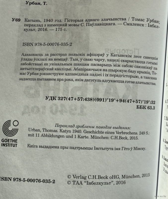 Томас Урбан КАТЫНЬ 1940 год Гісторыя аднаго злачынства