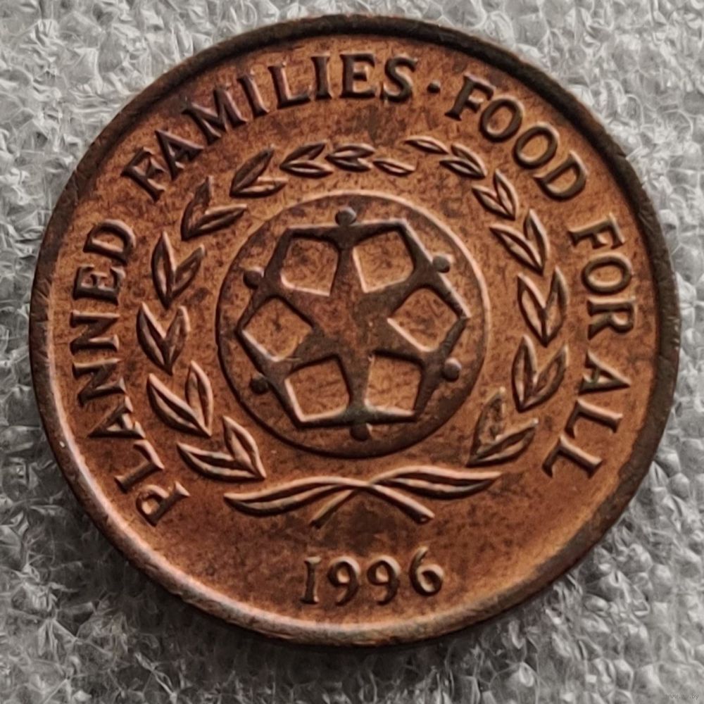 Номер KM # 67 Страна Тонга Период Королевство Тонга (1967 - 2018) Правитель Тауфа’ахау Тупоу IV Валюта Тонганская паанга Вид чекана Регулярный чекан Номинал 2 сенити Год 1981 - 1996 Наименование ФАО - Планирование семьи Гурт Гладкий Форма Круг Отношение авс/рев Медальное (0°) Материал Бронза Вес (g) 4 Диаметр (mm) 21 Толщина (mm) 1,6