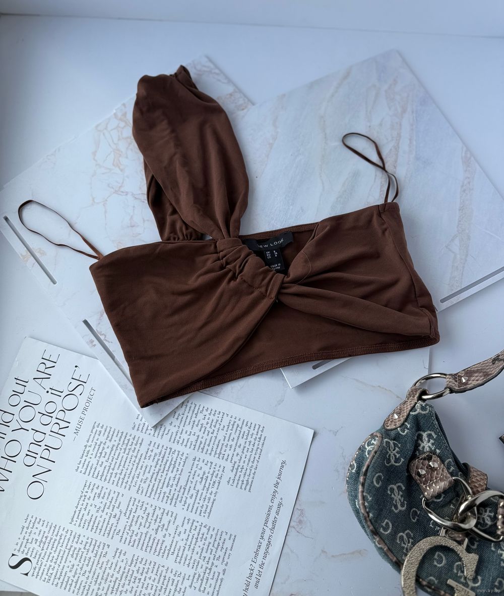 Топ шоколадный на одно плечо new look