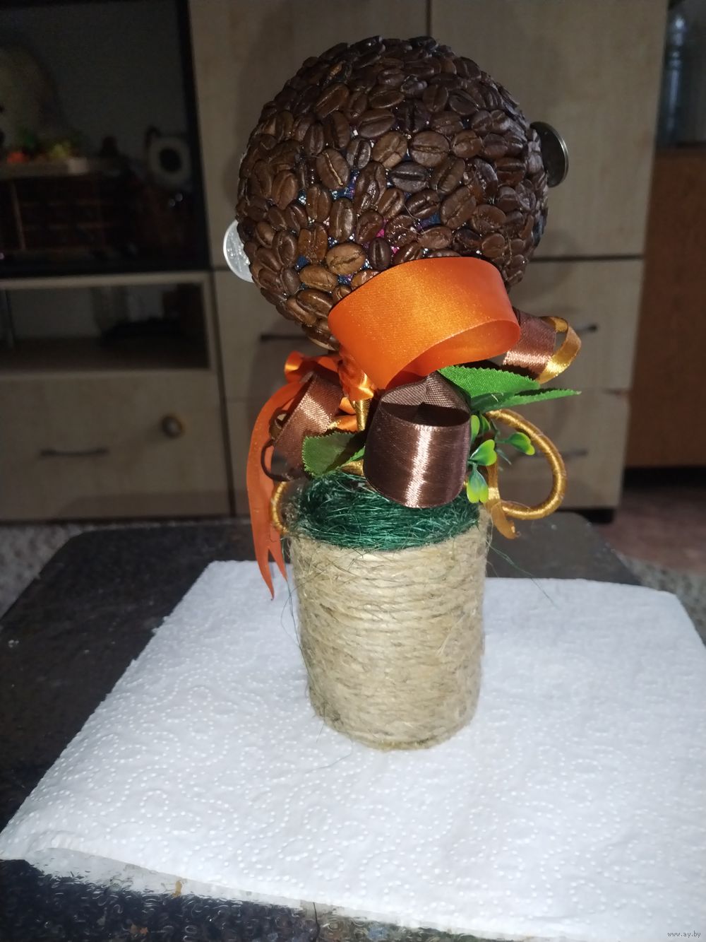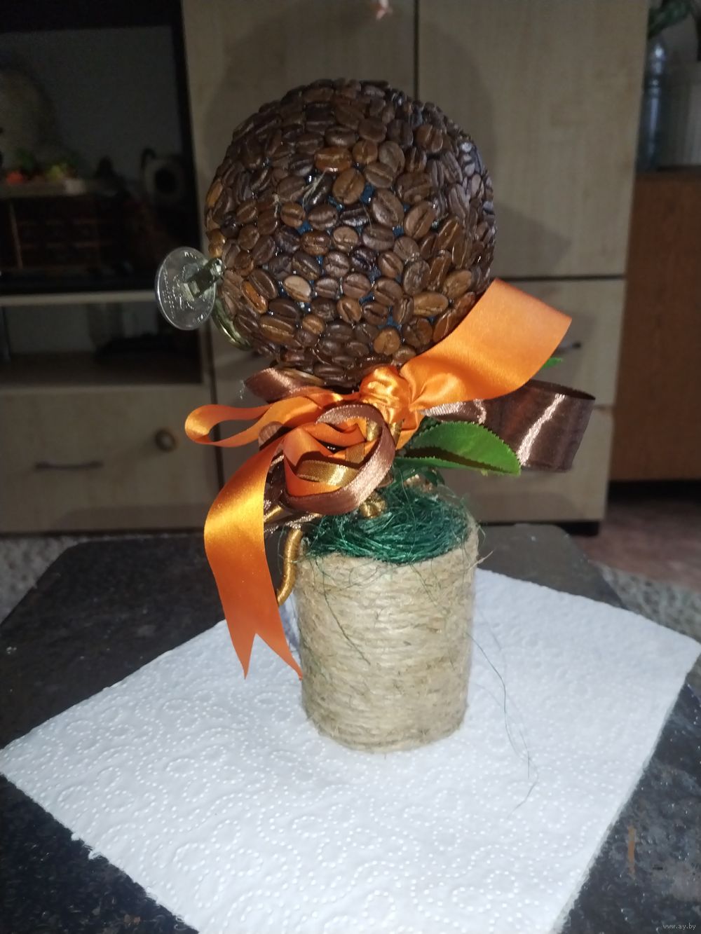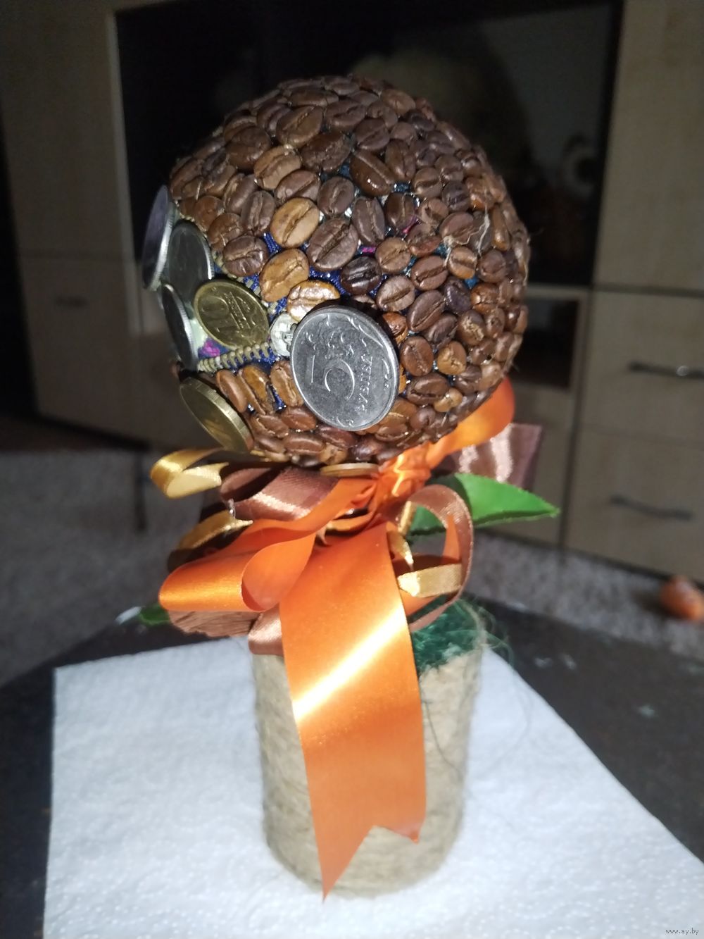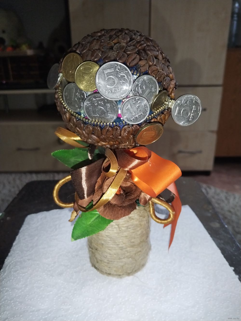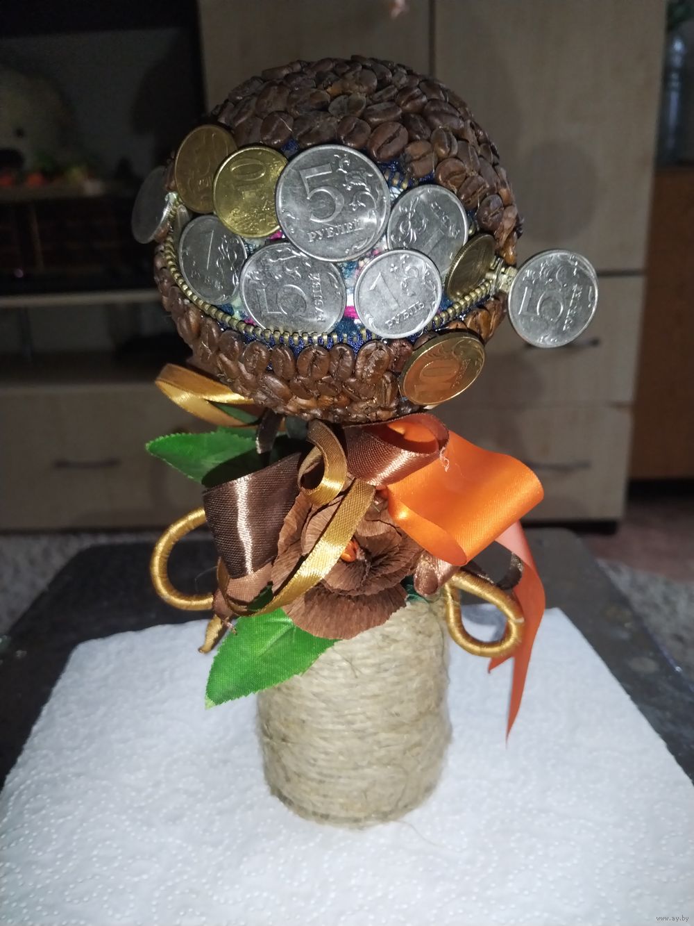 Топиарий из кофейных зерен и монет РФ. Своими руками.
