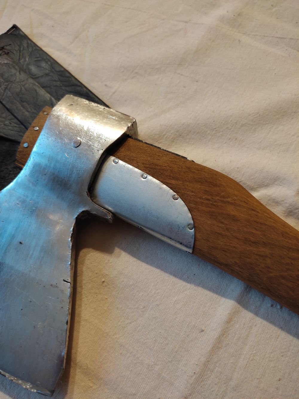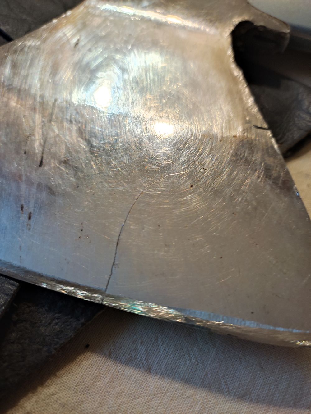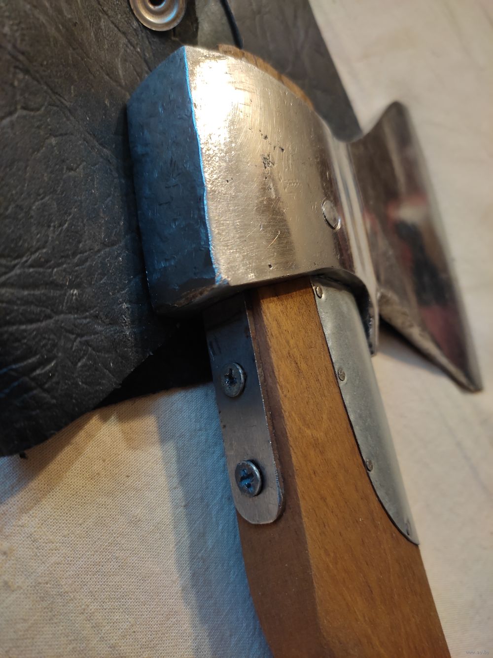 Топор малый СССР , самоделка , покрыт никелем , с чехлом. ВНИМАНИЕ : на лезвии есть трещина от сильного закала , но он еще поработает. Вес с рукояткой - 932 гр , ширина лезвия - 12,7 см , длина рукоятки - 38,5 см , материал рукоятки - береза ( тонировка ). Осажен прочно и надежно ( двойная защита , тройной клин ) , наточен , готов к работе. Отличная сталь СССР ! Высылаю : Белпочта , Европочта.