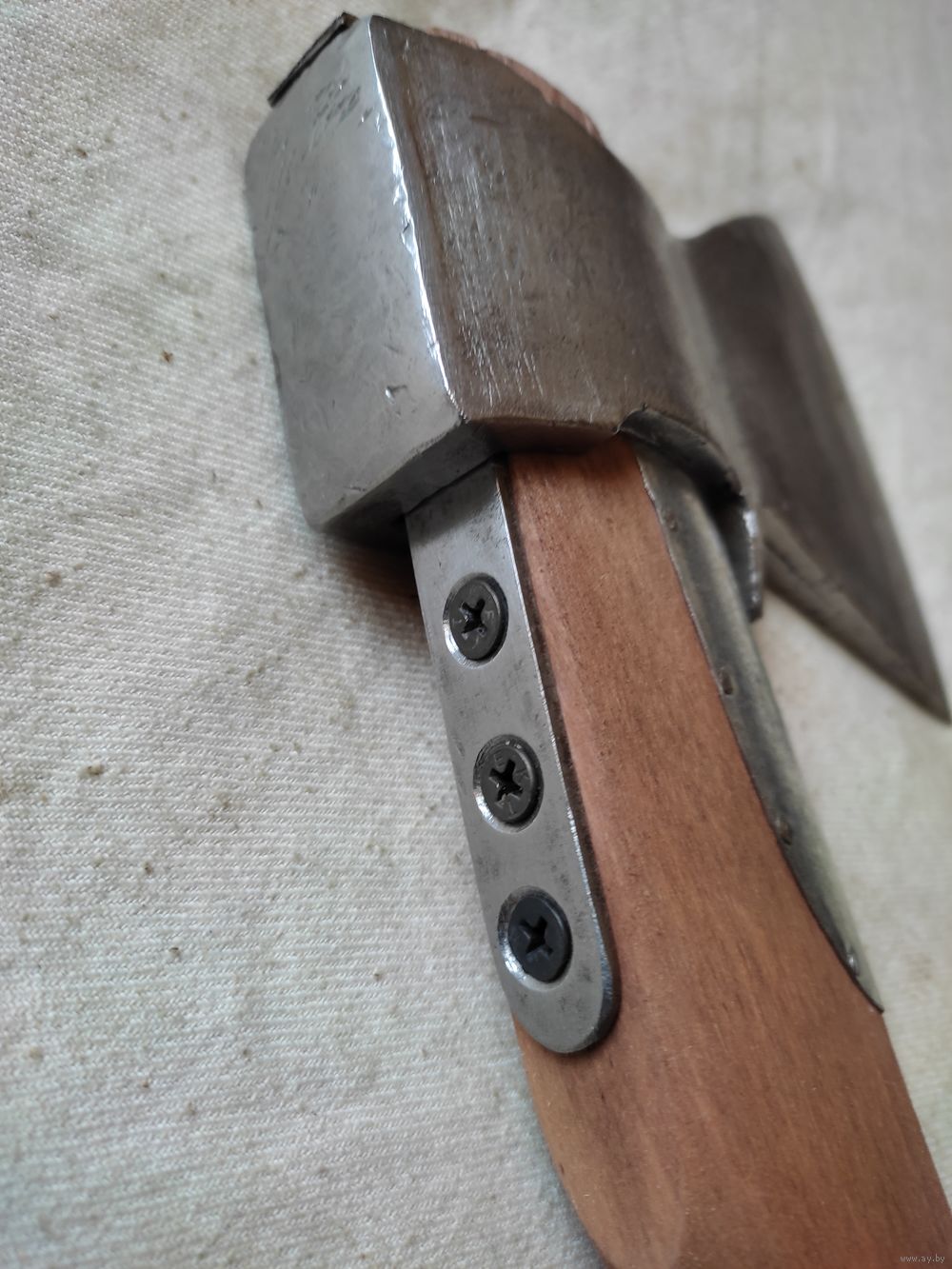 Топор , топорик , малый , ГПЗ. Полная очистка и реставрация , отличное состояние . Вес с рукояткой - 990 гр , ширина лезвия - 11,2 см , длина рукоятки - 38,5 см , материал рукоятки - береза ( тонировка ). Осажен прочно и надежно ( двойная защита , тройной клин ) , наточен , готов к работе. Высылаю : Белпочта , Европочта.