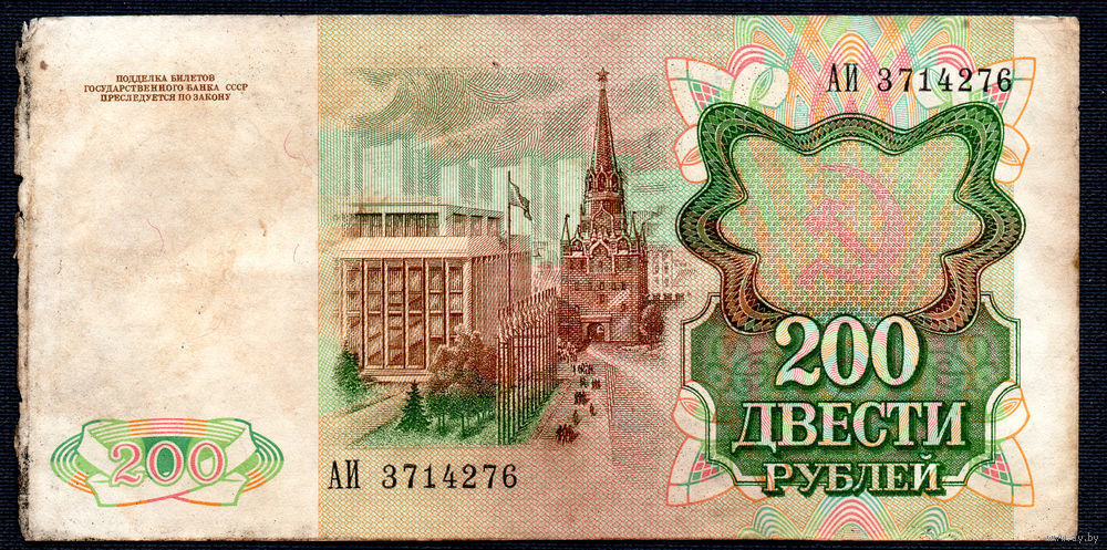 ТОРГ! 200 рублей образца 1991 года! Серия АИ! СССР! ВОЗМОЖЕН ОБМЕН!