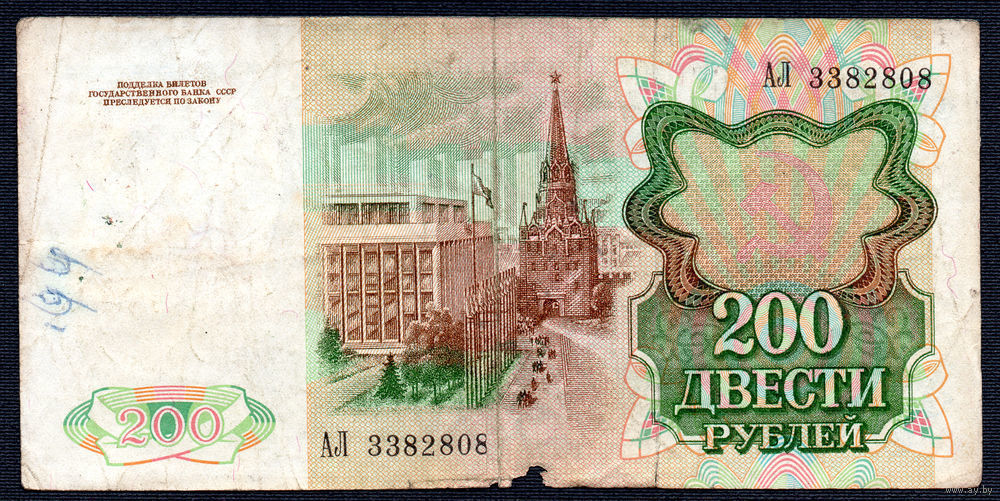 ТОРГ! 200 рублей образца 1991 года! Серия АЛ! СССР! ВОЗМОЖЕН ОБМЕН!