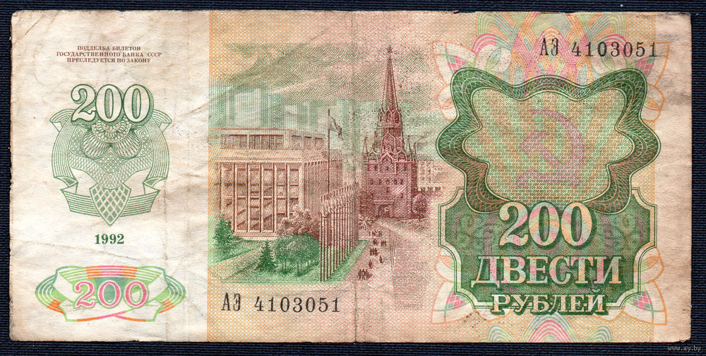 ТОРГ! 200 рублей образца 1992 года! Серия АЭ! СССР! ВОЗМОЖЕН ОБМЕН!
