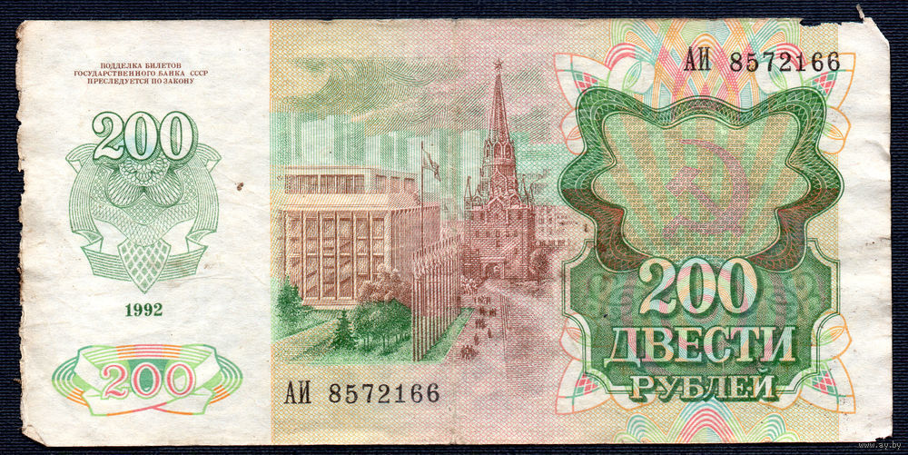 ТОРГ! 200 рублей образца 1992 года! Серия АИ! Первая! СССР! ВОЗМОЖЕН ОБМЕН!