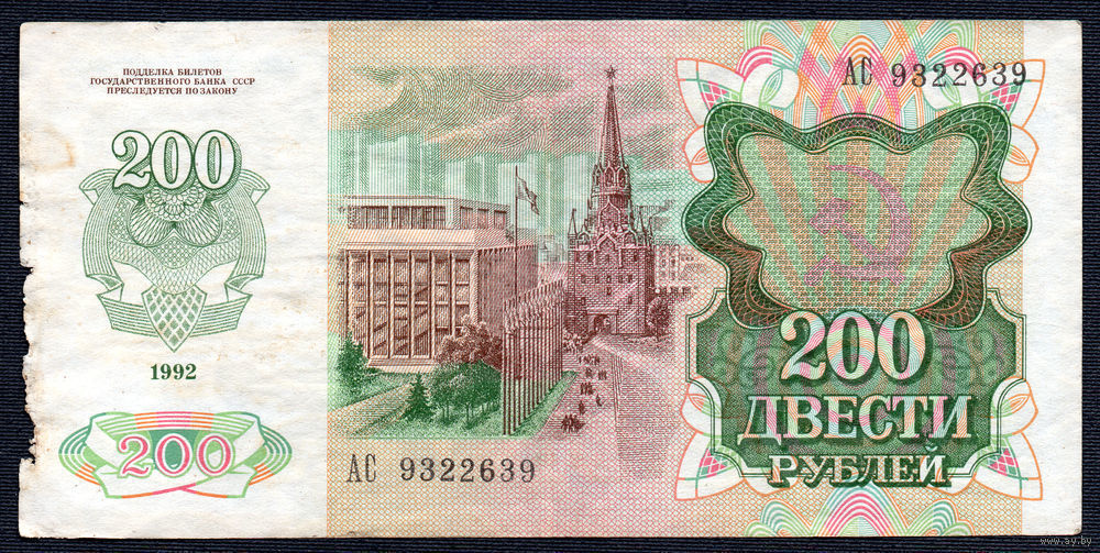 ТОРГ! 200 рублей образца 1992 года! Серия АС! СССР! ВОЗМОЖЕН ОБМЕН!
