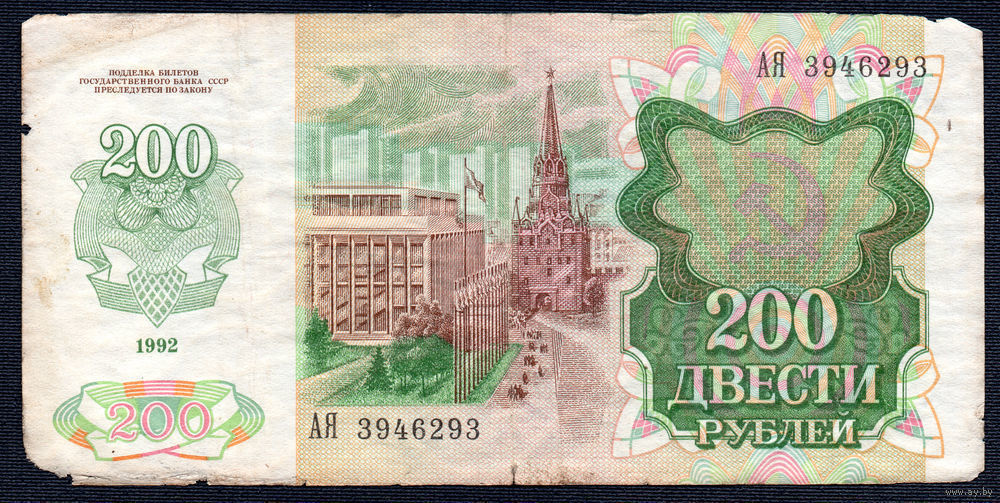 ТОРГ! 200 рублей образца 1992 года! Серия АЯ! СССР! ВОЗМОЖЕН ОБМЕН!