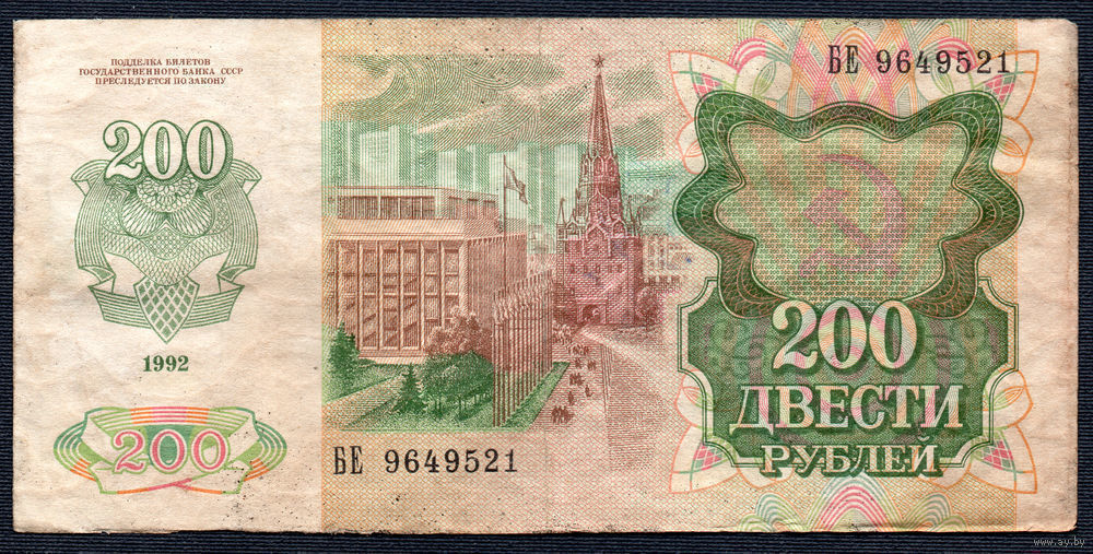 ТОРГ! 200 рублей образца 1992 года! Серия БЕ! СССР! ВОЗМОЖЕН ОБМЕН!