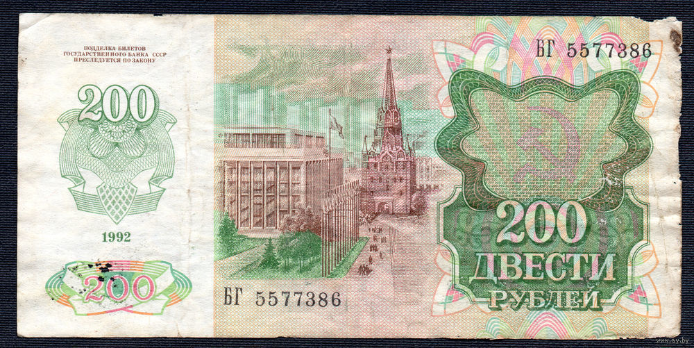 ТОРГ! 200 рублей образца 1992 года! Серия БГ! СССР! ВОЗМОЖЕН ОБМЕН!