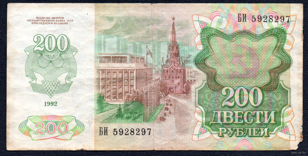 ТОРГ! 200 рублей образца 1992 года! Серия БИ! СССР! ВОЗМОЖЕН ОБМЕН!