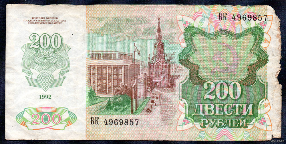 ТОРГ! 200 рублей образца 1992 года! Серия БК! СССР! ВОЗМОЖЕН ОБМЕН!