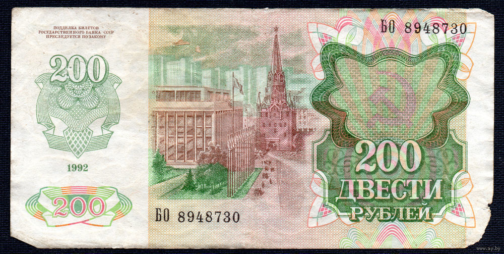 ТОРГ! 200 рублей образца 1992 года! Серия БО! СССР! ВОЗМОЖЕН ОБМЕН!