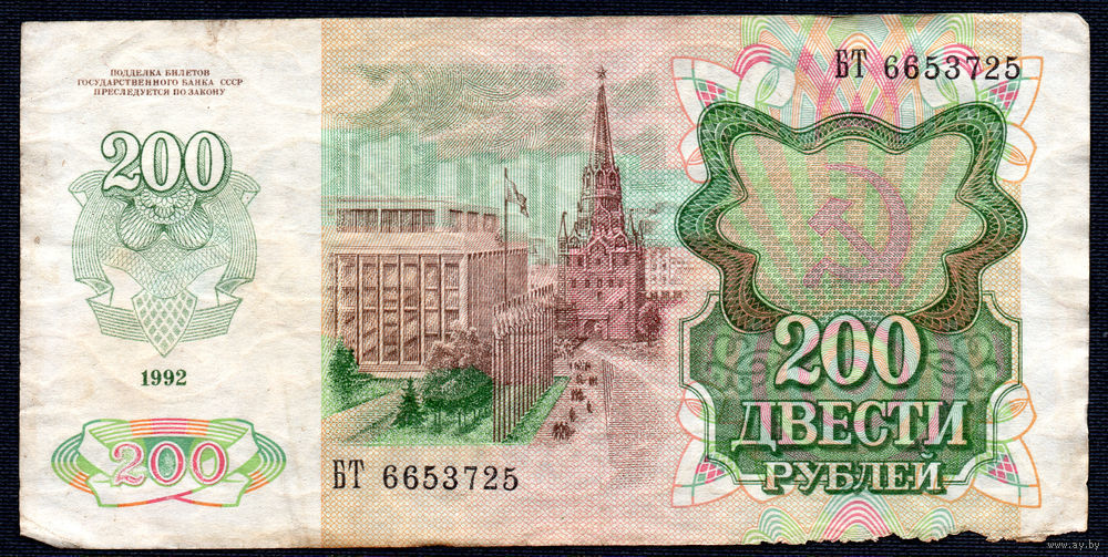 ТОРГ! 200 рублей образца 1992 года! Серия БТ! СССР! ВОЗМОЖЕН ОБМЕН!