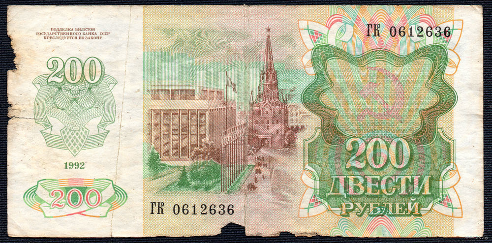 ТОРГ! 200 рублей образца 1992 года! Серия ГК! СССР! ВОЗМОЖЕН ОБМЕН!