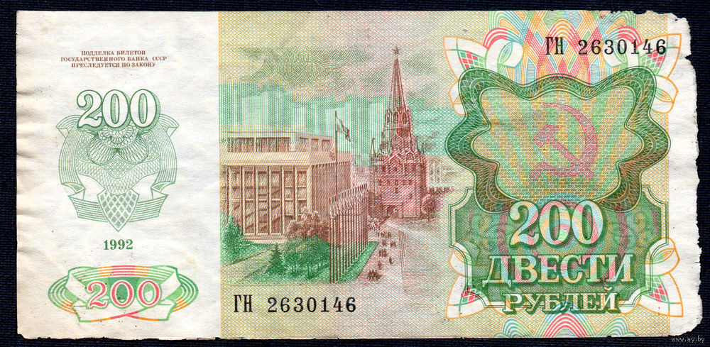ТОРГ! 200 рублей образца 1992 года! Серия ГН! Последняя! СССР! ВОЗМОЖЕН ОБМЕН!
