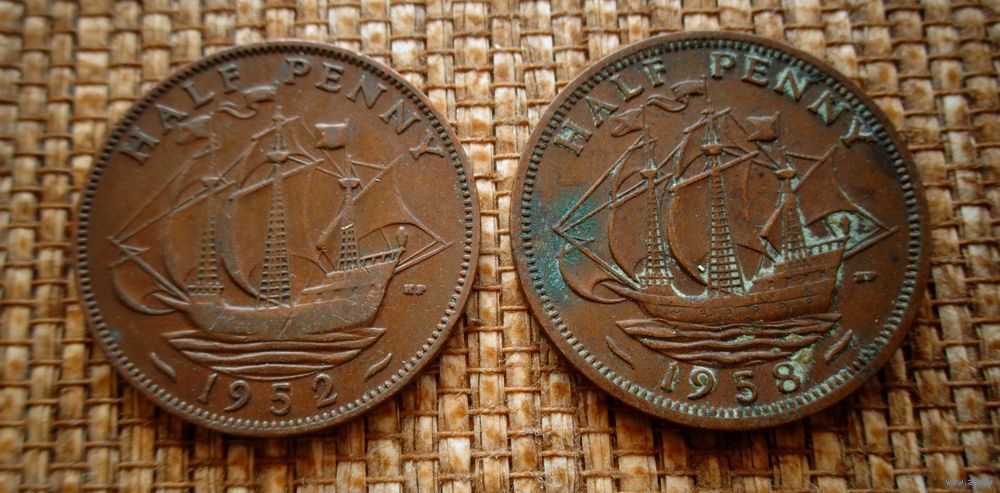 ТОРГ! Англия 1/2 пенни 1952 и 1958! Георг VI и Елизавета II! Шоколадная патина! Медь! ВОЗМОЖЕН ОБМЕН!