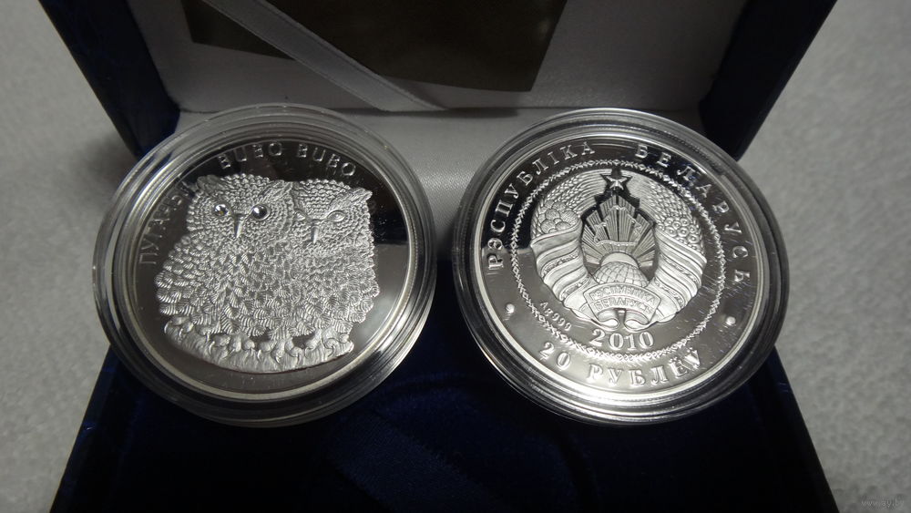 Торги. Пугачы ("Филины"). 20 рублей . Серебро , проба 999 . 2010 год . В родной капсуле !