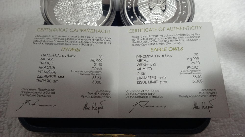 качество: "пруф", со вставкой: 2 кристалла Сваровски . Идеал . Капсула не вскрывалась .