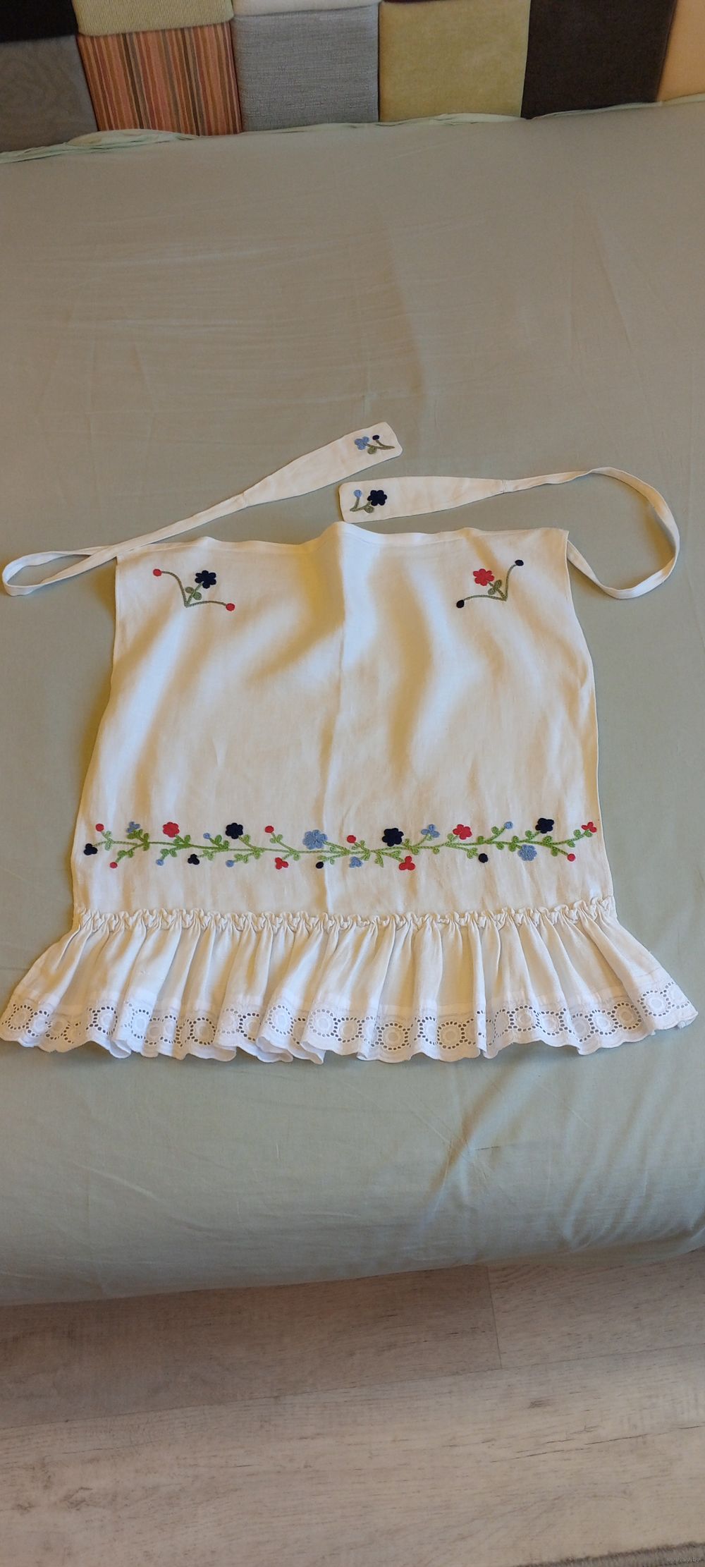 Традыцыйны фартух (передник) для навагрудскага/лідскага строю. Сучасная вышыўка тамбурным швом, рэканструкцыя па Раманюку. На хвастах вышыўка двухбаковая. Лён. Адзеты некалькі разоў. Вул.Падгорная, адпраўляю поштай. 120р.