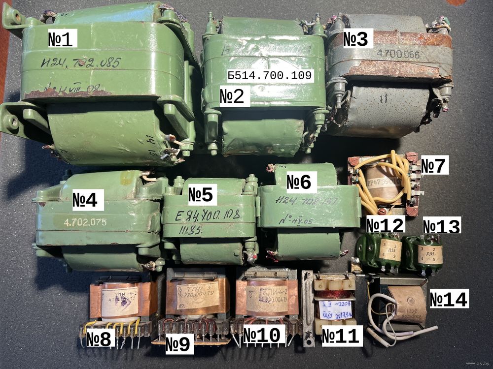 Трансформаторы с номером на фото, цена в списке ниже. Катушки индуктивности спрашивайте.