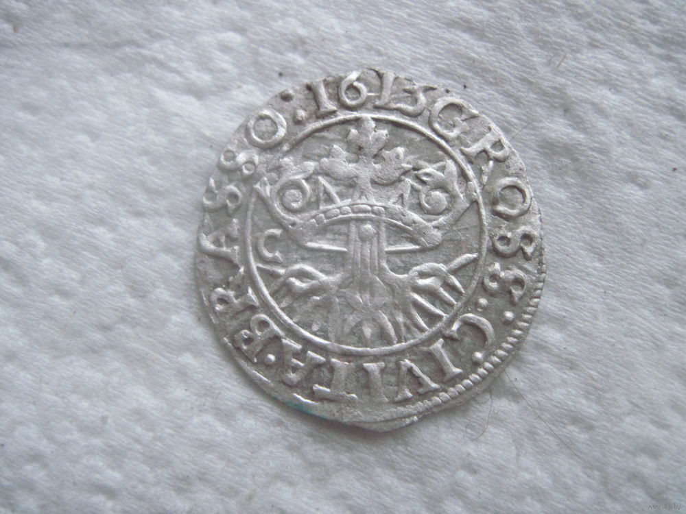 Редчайший трансильванский грошен 1613 года отчеканенный на территории Румынии Сибенбурген город Брашов в великолепном коллекционном состоянии UNC S на щите орла - на последних трех фото представлен пример продажи подобной монеты с ценой