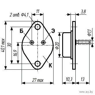 • Рк т max - Постоянная рассеиваемая мощность коллектора с теплоотводом: 100 Вт;