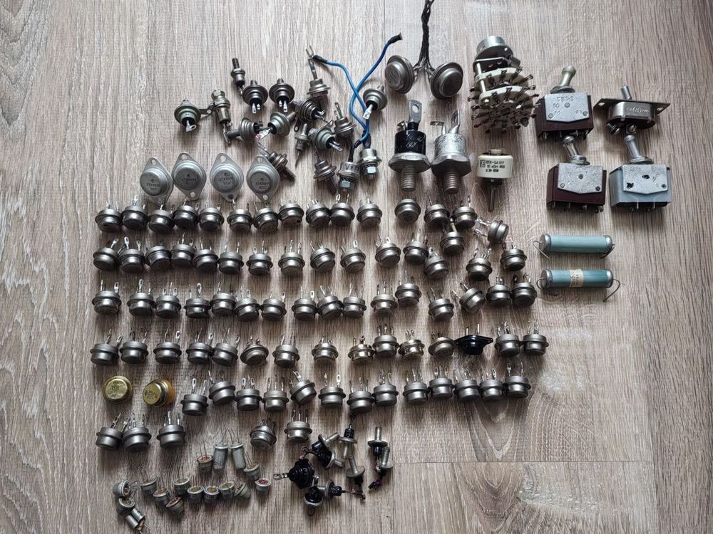 транзисторы диоды идругие детали новые и бу вес всех деталей 2 кг.