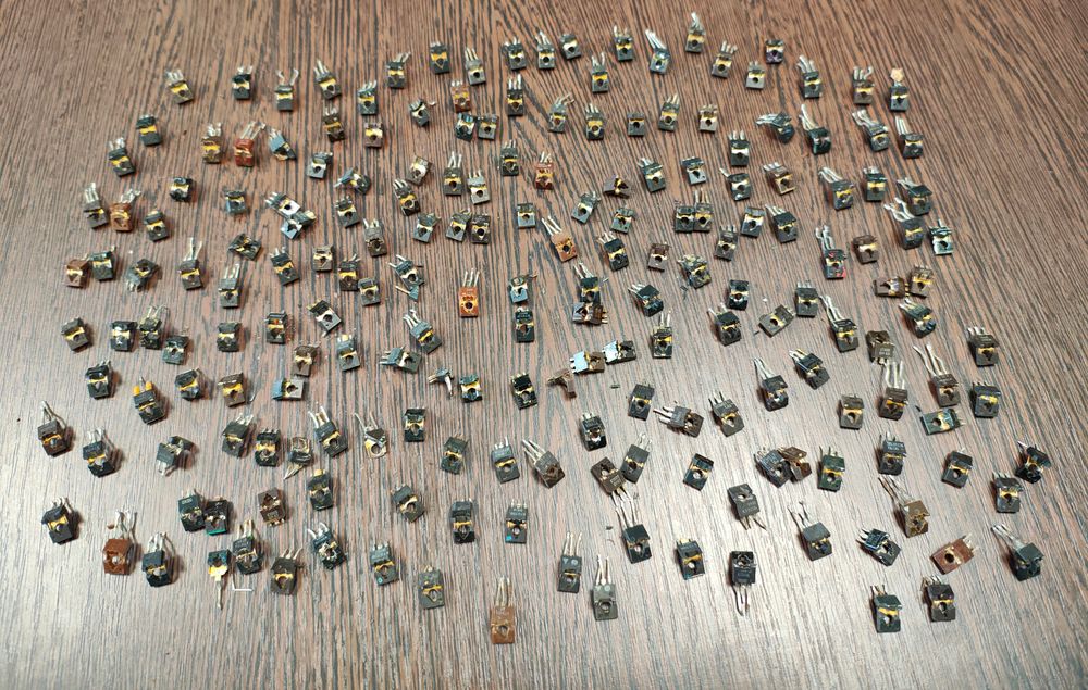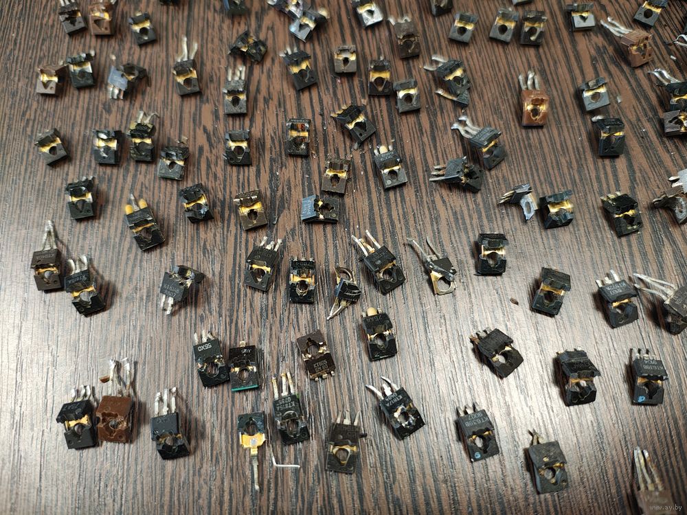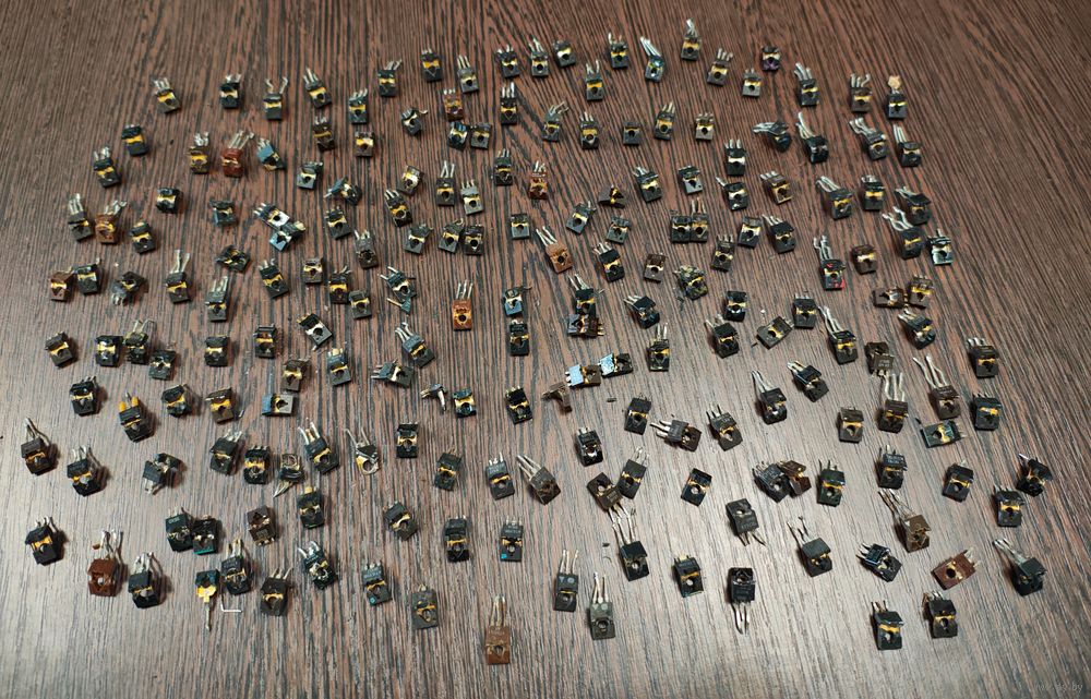 У всех транзисторов внутри жёлтого цвета покрытие. 200 штук.