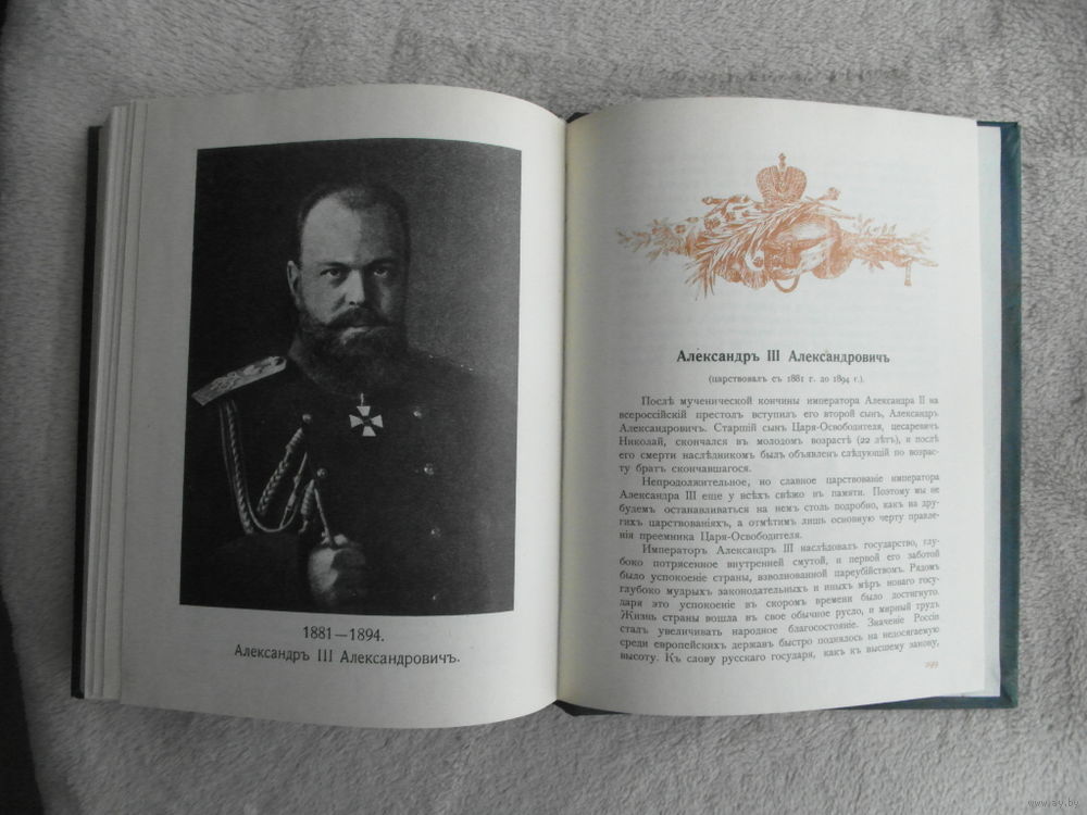 Редактор Суворова Н.И. Художник Прохоров Е.В. Книга представляет собой очерки российских историков, впервые изданные после 1917 г. Статьи В. Ключевского, Н. Карамзина, Н. Костомарова и др. - о династии Романовых и политическом и историческом развитии России на протяжении трех веков. Каждому из царствующей семьи: Михаил Федоровичу, Алексею Михайловичу, Федору Алексеевичу и т.д. - до Александр III Александровича - посвящена отдельная обстоятельная глава. 124 прекрасно повторенных гравюрных рисунков и портретов, факсимиле царских подписей, заставки и концовки глав в тоновом режиме.