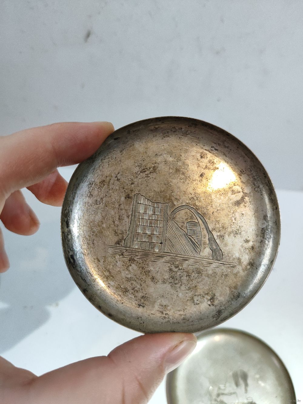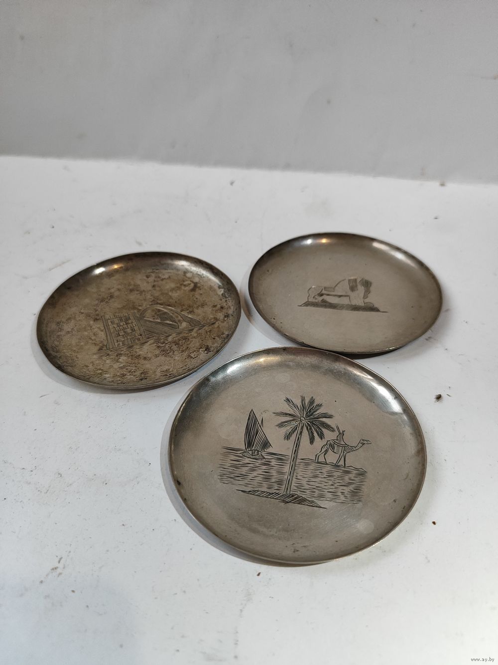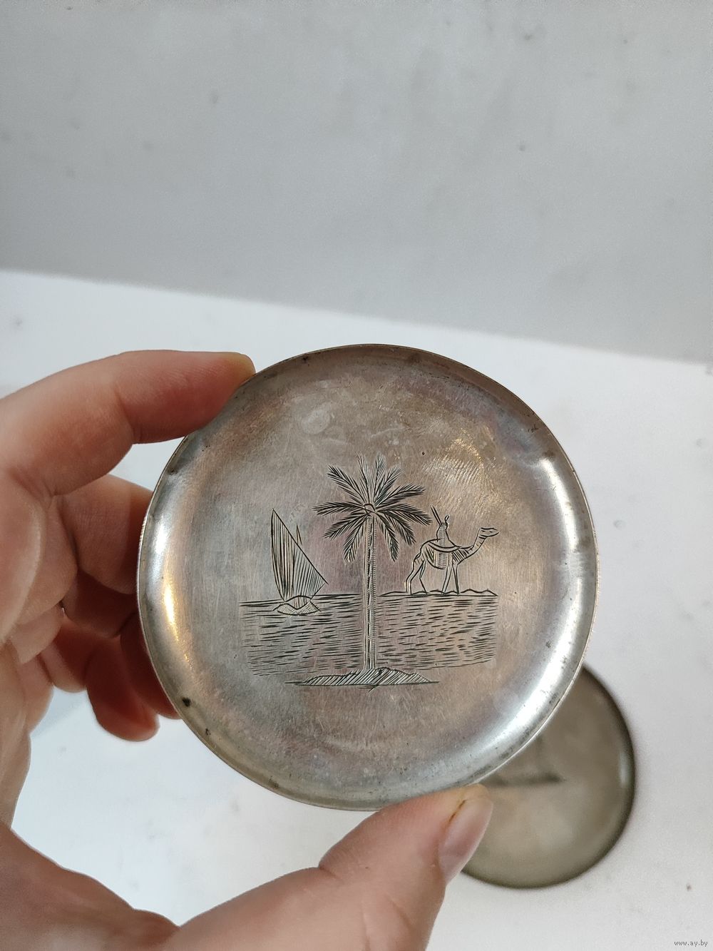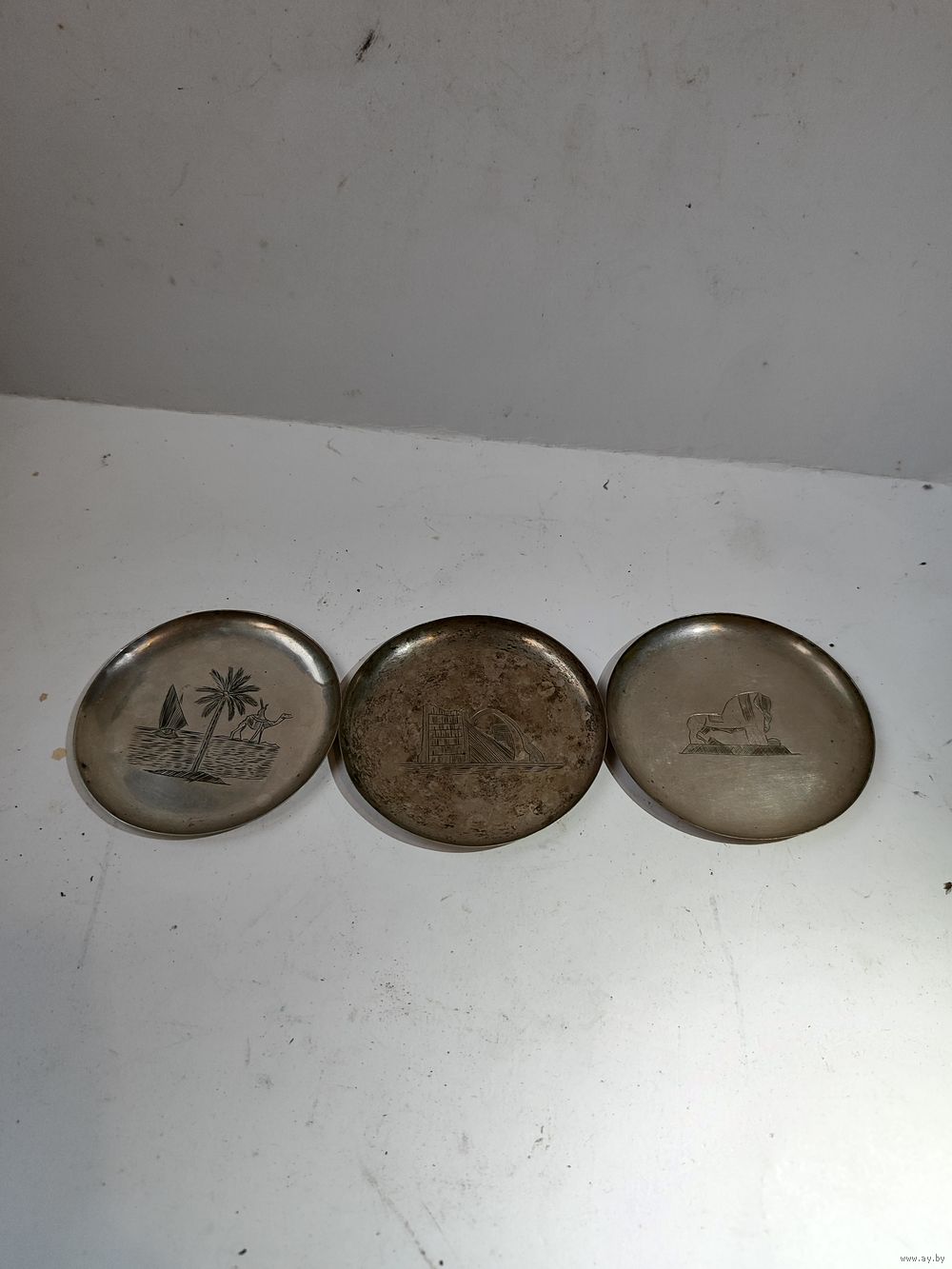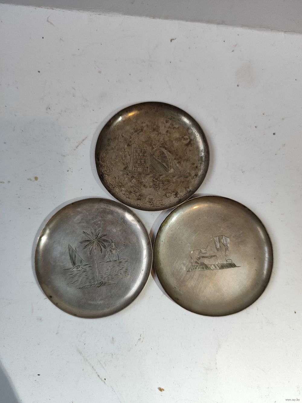 Без клейма. Общий вес - 77,4 гр. Серебро не ниже 850 пр. Гравировка. Привезены из Ирана в 60 годах. Состояние на фото. Диаметр около 8 см.