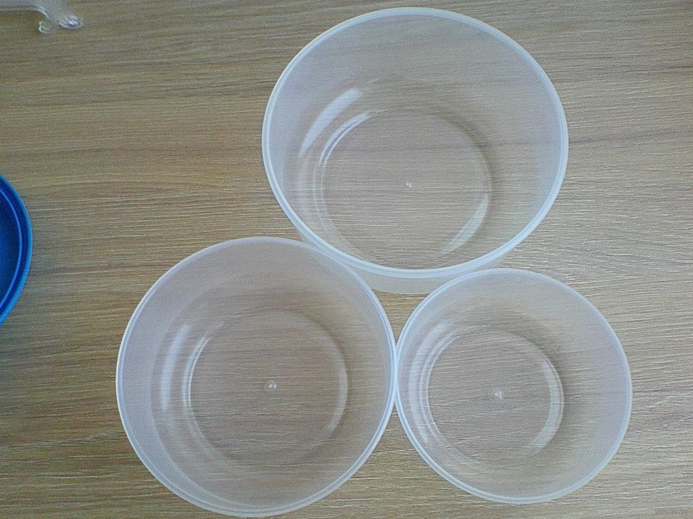 Малый - Диаметр - 13 см. Высота -5 см. Объём - 0,5 литра.