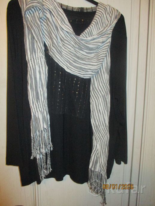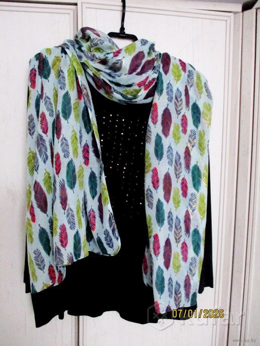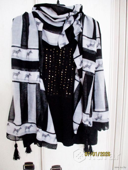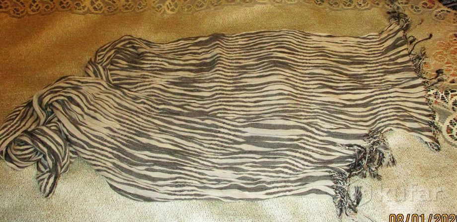 Как новые. Одеты по разу. Палантин с зебрами и кисточками. вискоза 98х183см.-24р Шарф серо-белая полоска,жатка,с кисточками,хлопок,вискоза 32х143см-17р.Яркий бирюзовый шарф,,шелк.72х175см-17р