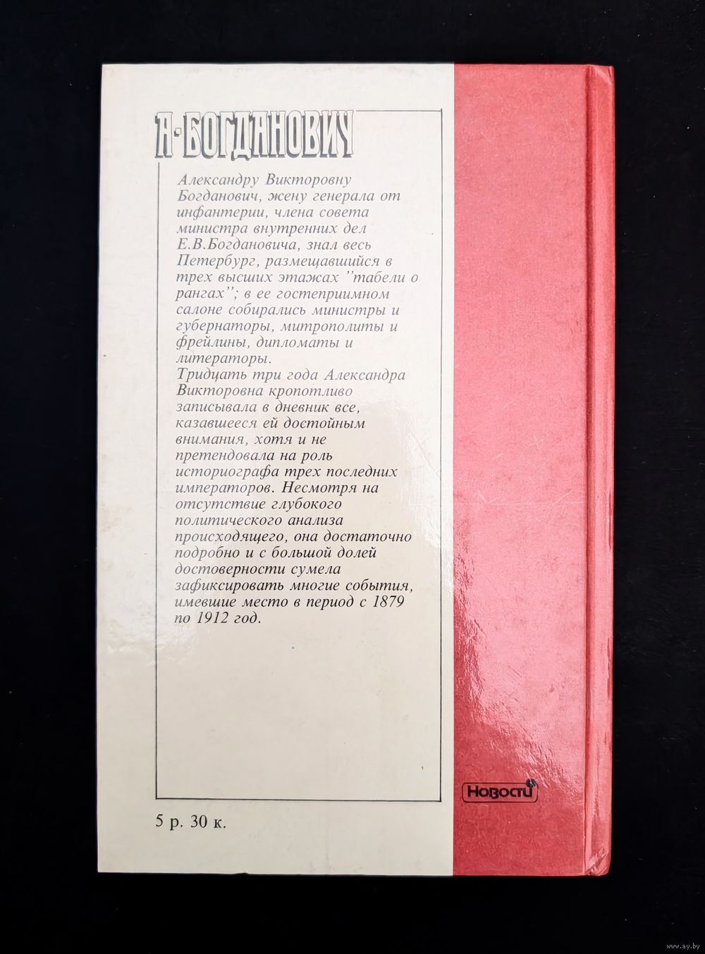 Александру Викторовну Богданович знал весь Петербург, размещавшись в трех высших этажах "табели о рангах"; в его гостеприимном салоне собирались министры и губернаторы, митрополиты и фрейлины, дипломаты и литераторы. Тридцать три года Богданович кропотливо записывала в дневник все казавшееся ей достойным внимания, хотя и не претендовала на роль историографа трех последних императоров. Несмотря на отсутствие глубокого политического анализа происходящего, она достаточно подробно и с большой долей достоверности сумела зафиксировать многие события, имевшие место в период с 1879 по 1912 год.