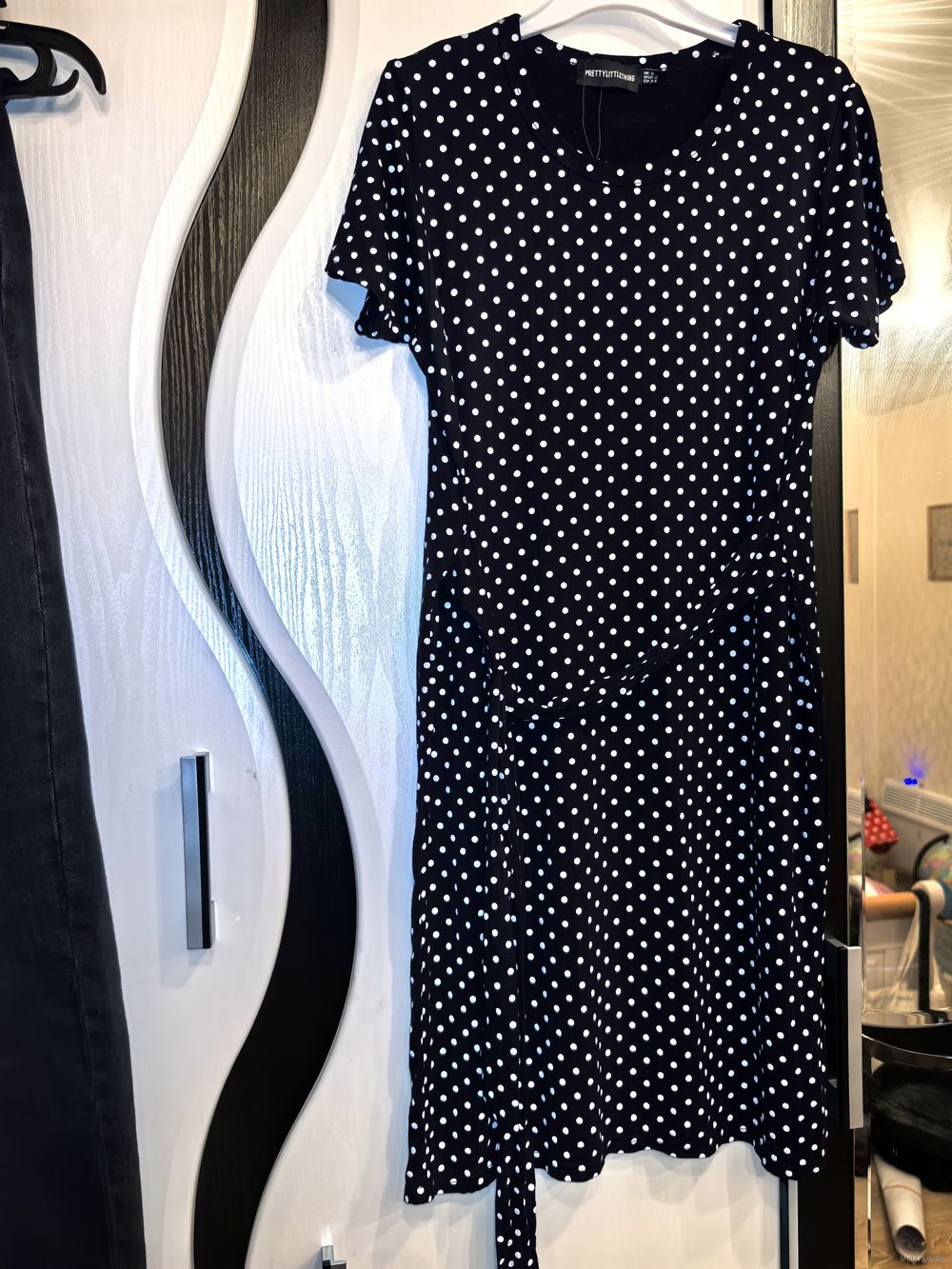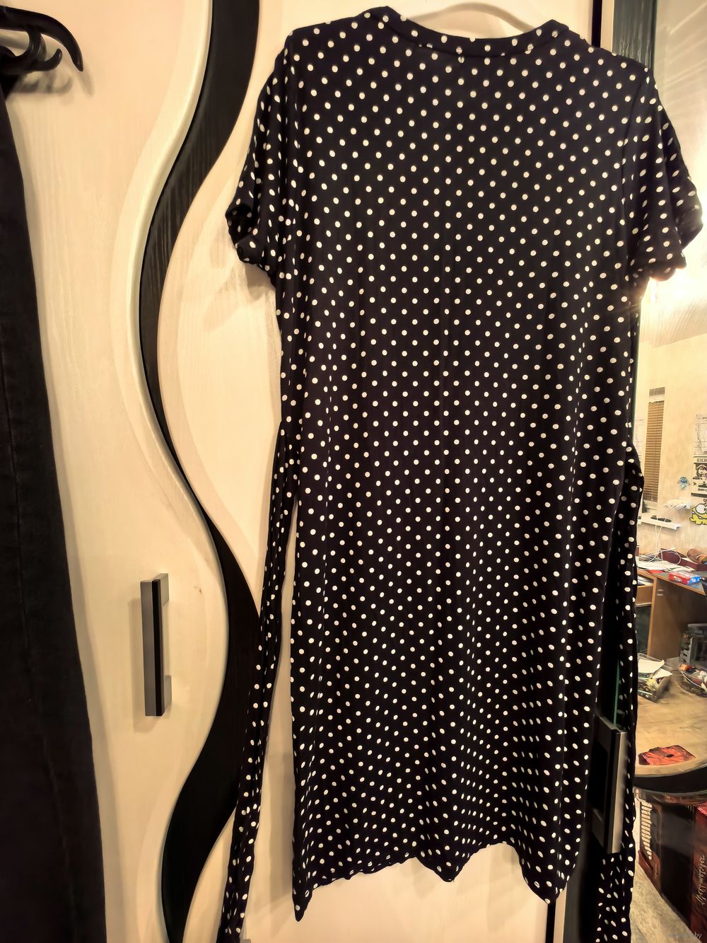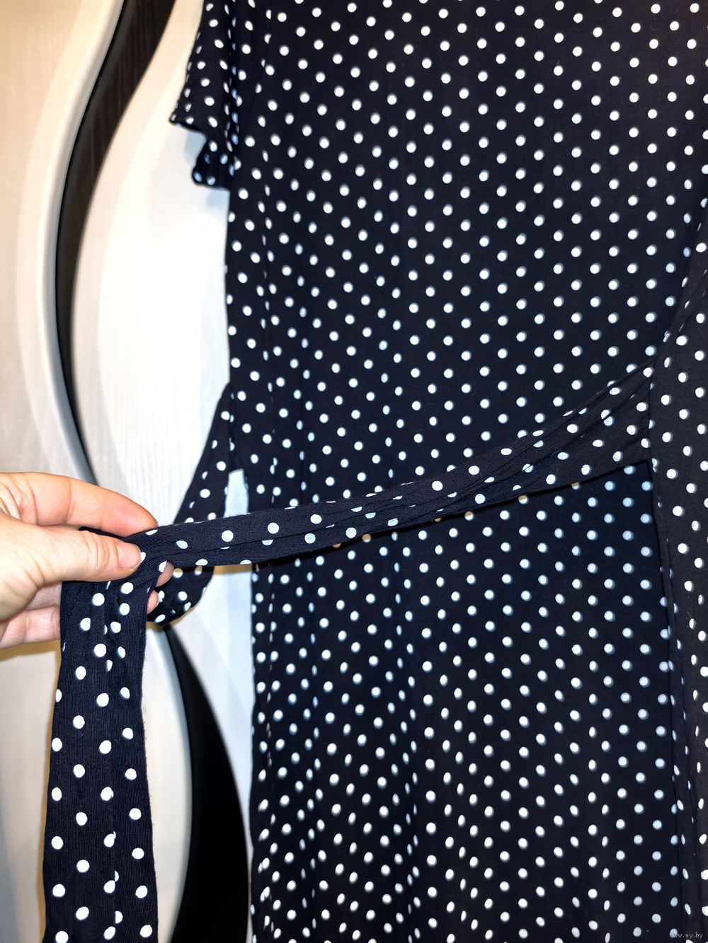 Фирменное лаконичное платье с коротким рукавом и круглым вырезом горловины. Под пояс.