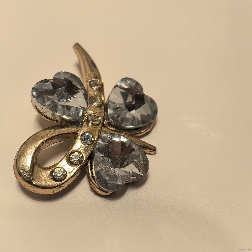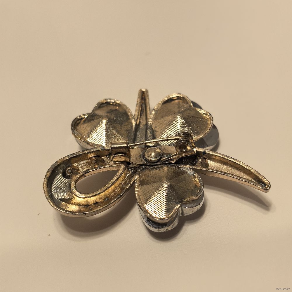 Изящная брошь на удачу в виде трилистника. Похожа на клевер. Прекрасно смотрится в современном образе. Отличное состояние.