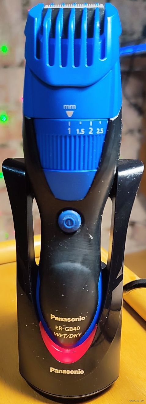Триммер для бороды и усов Panasonic ER-GB40. Аккумулятор держит отлично, хватало на 6-8 стрижек с одной подзарядки в течение 3-4 месяцев. Ножи отличные, волосы не дерут. Сломалась держалка пружинки ножа (фото №9). Сделано в Китае