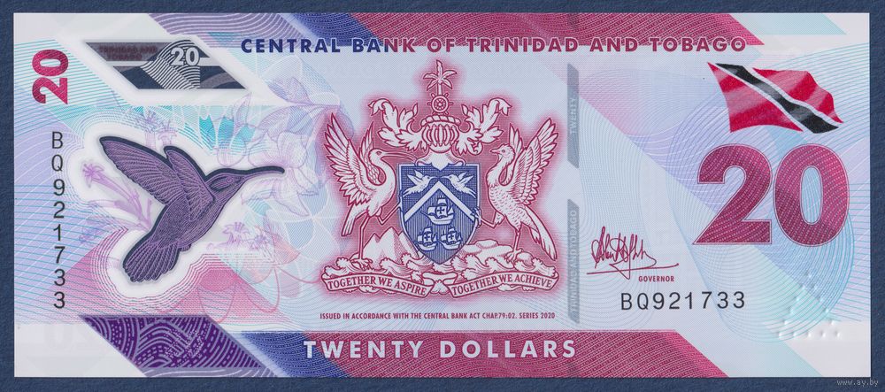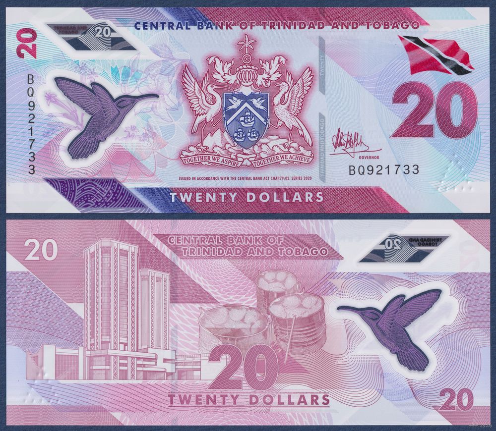 Тринидад и Тобаго, 20 долларов 2020 г, P-W63 (BQ, полимер, номинация IBNS 2020, колибри), UNC
