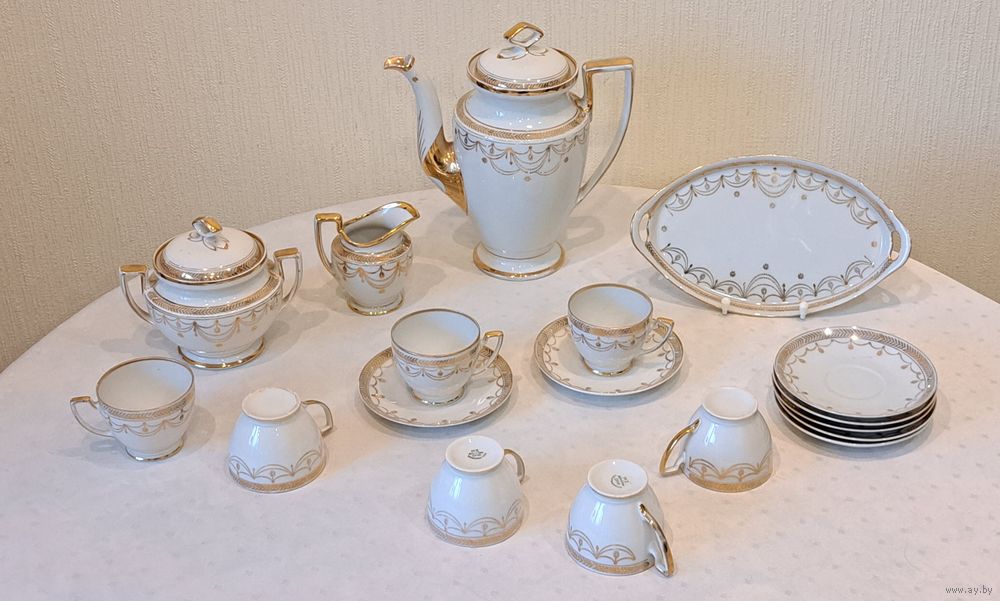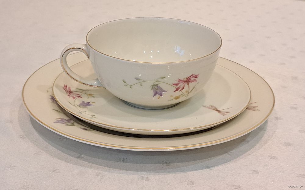 Трио 4 штуки высококачественный фарфор слоновая кость Porzellanfabrih Arzberg Bayern Германия 1950-е годы, чашка 250 мл.