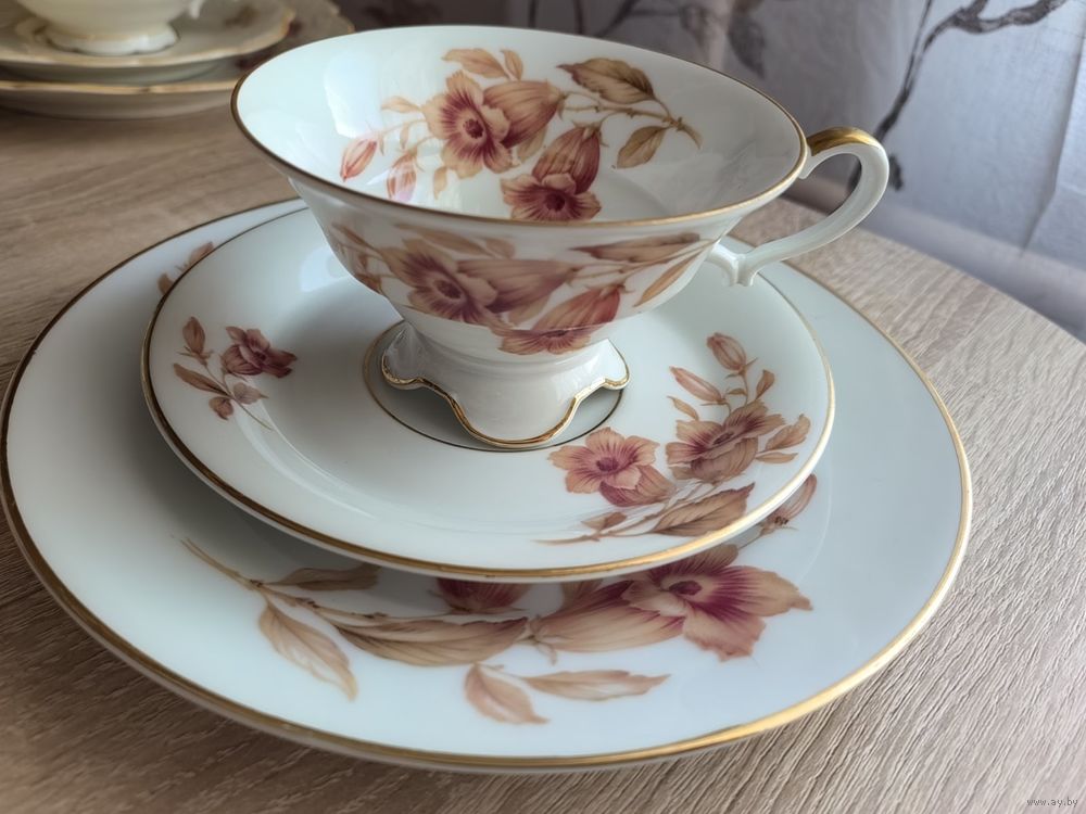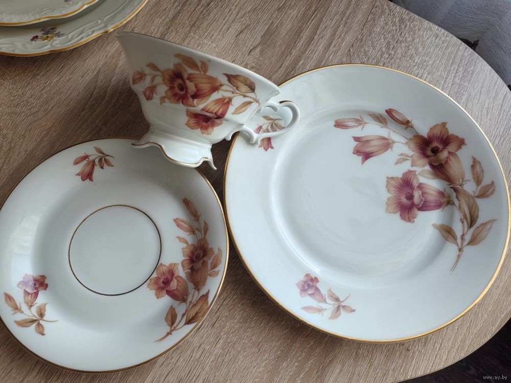 Трио Hutschenreuther, клеймо 1939-1964 гг. Тонкостенный белоснежный фарфор, без каких либо дефектов, отличная сохранность.