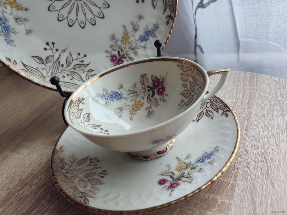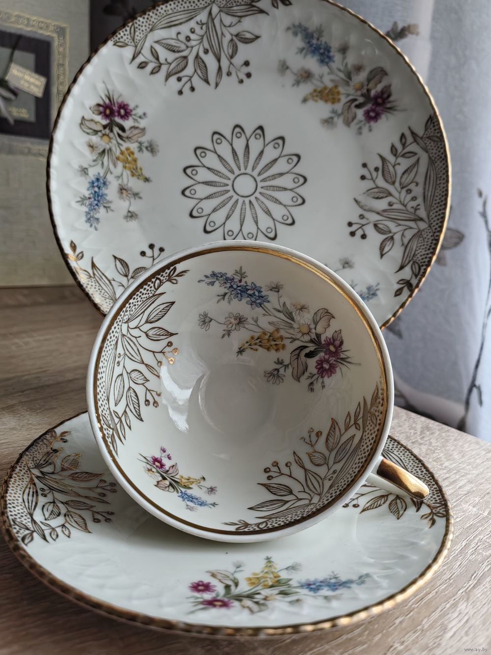 Чайная, кофейная троечка Winterling из тонкостенного фарфора с богатым декором. Состояние отличное. Объем чашечки 150 мл. Клеймо 1950 гг.